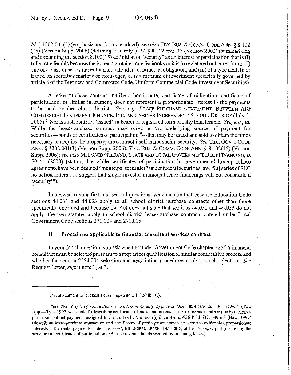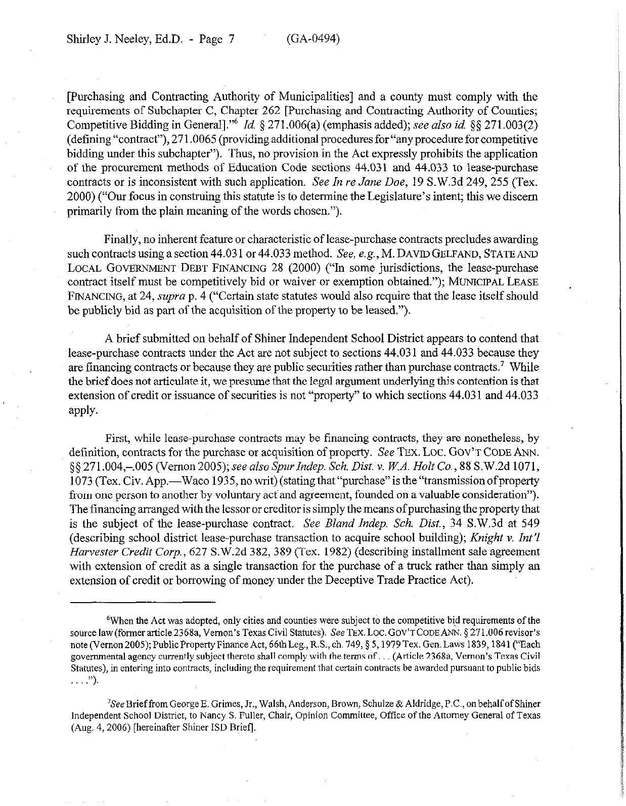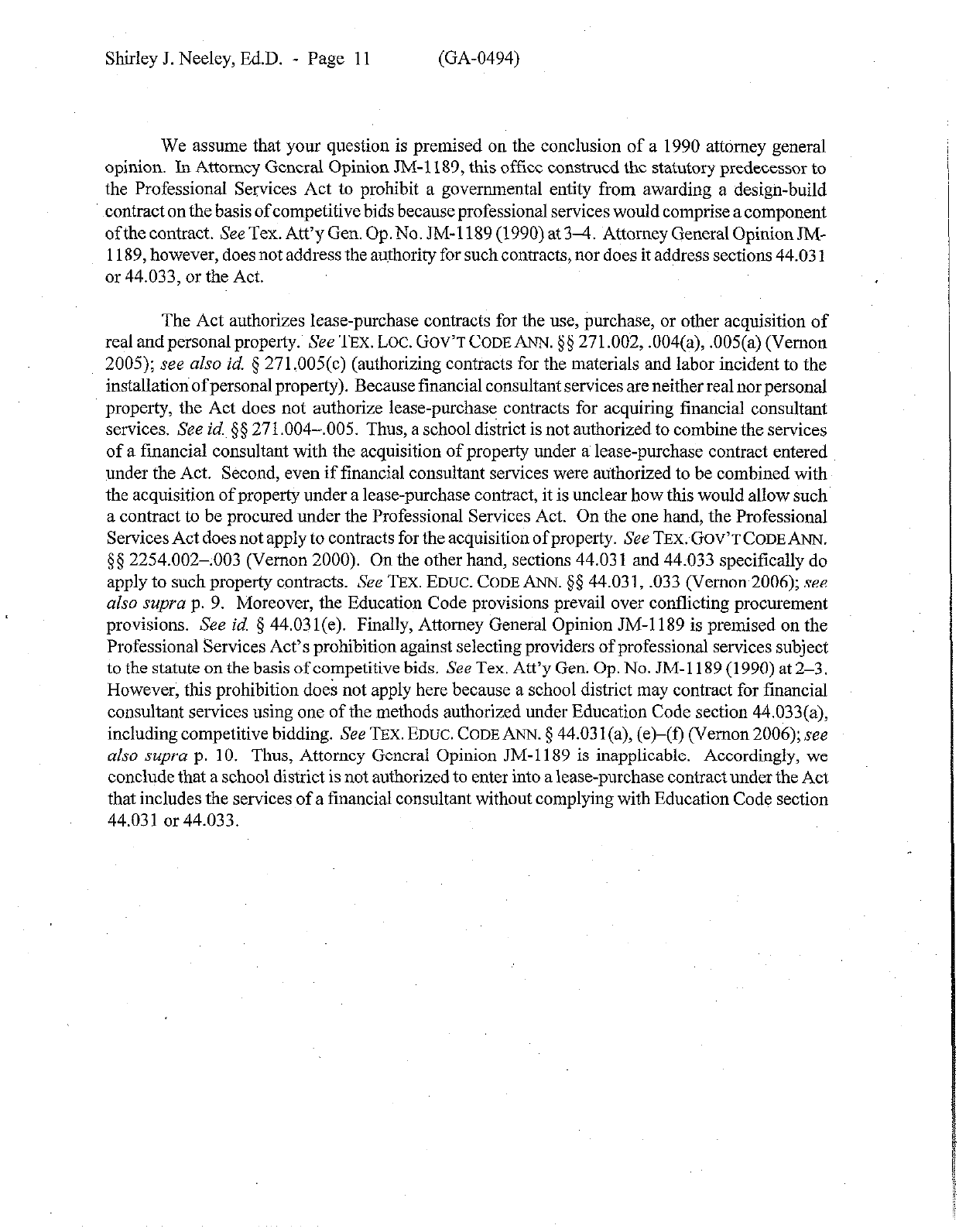 Shirley J. Neeley, Ed.D. - Page 11 (GA-0494)