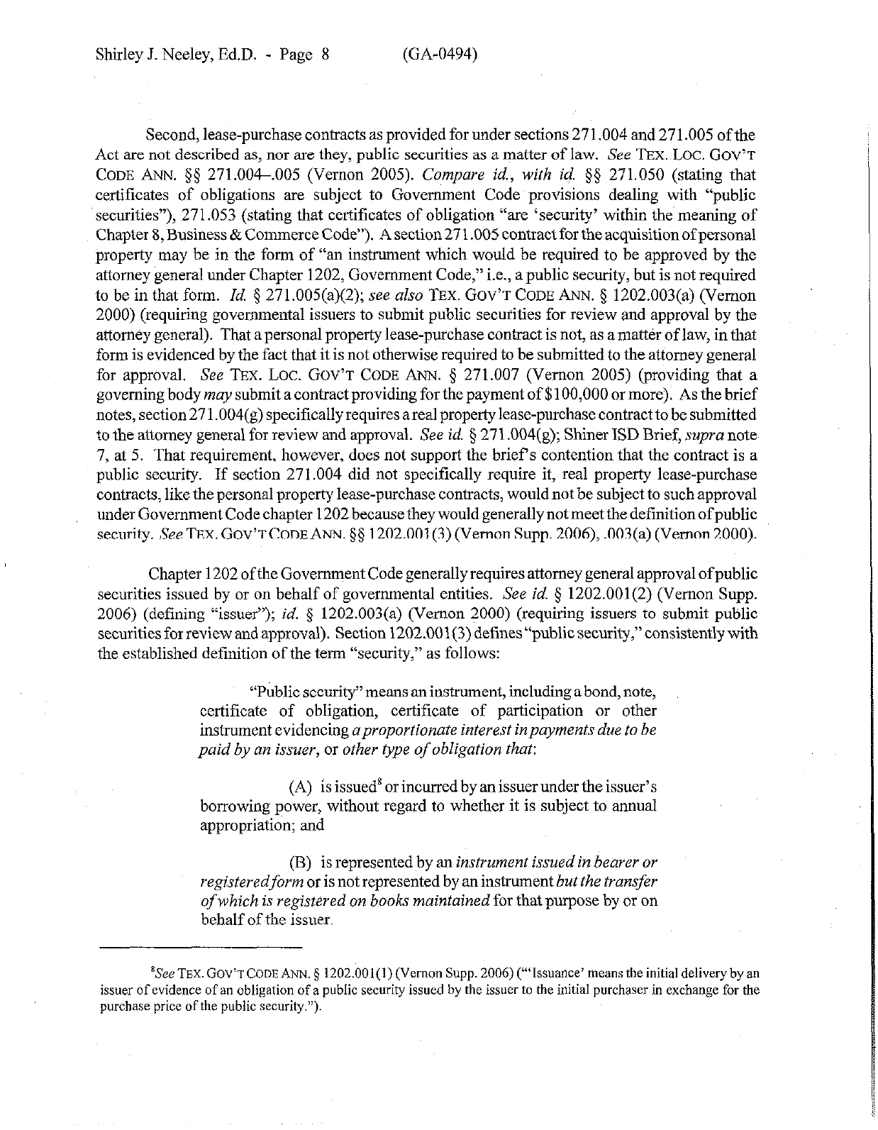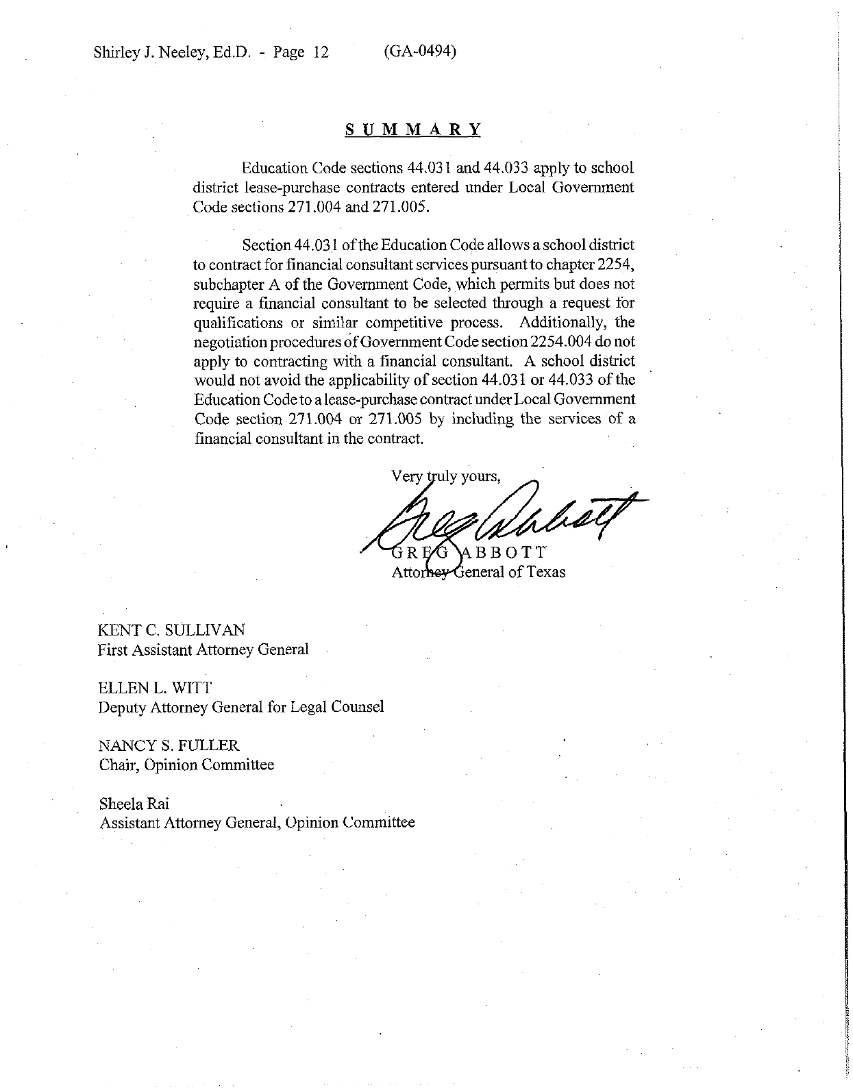 Shirley J. Neeley, Ed.D. - Page 12 (GA-0494)