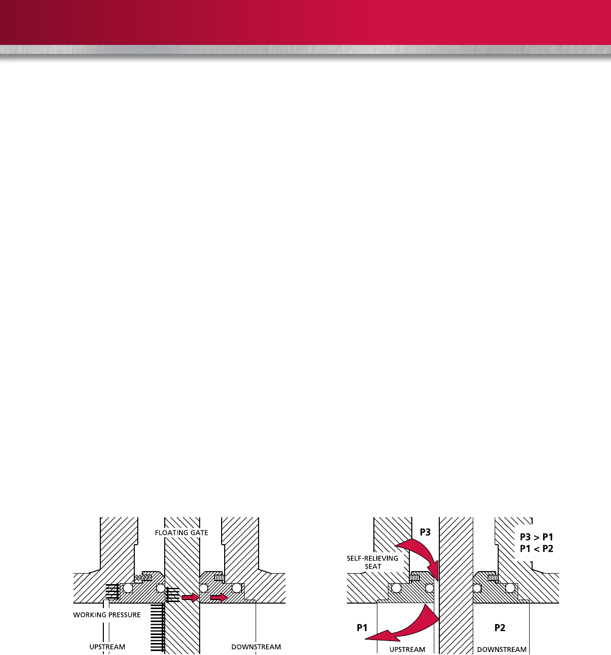 When the gate is closed, the forces derived from upstream working pressure push the gate tightly against the