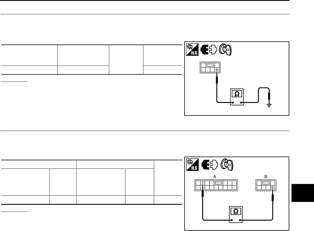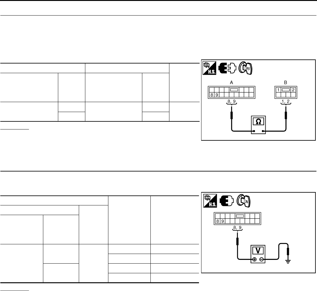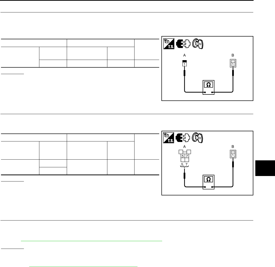 2. Check continuity between automatic drive positioner control unit connector and door mirror connector.