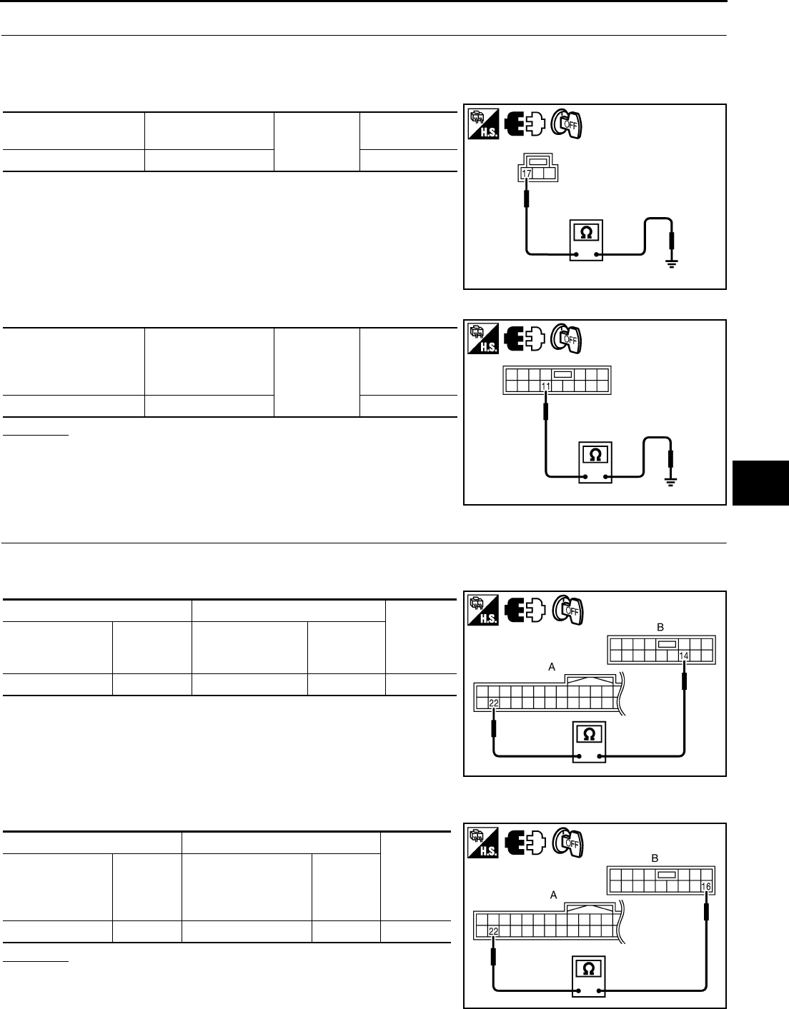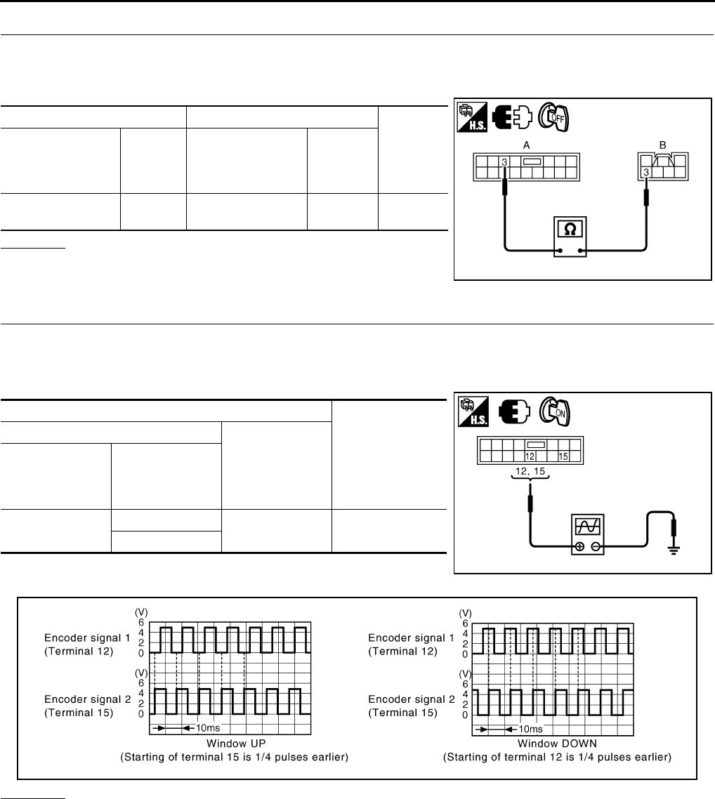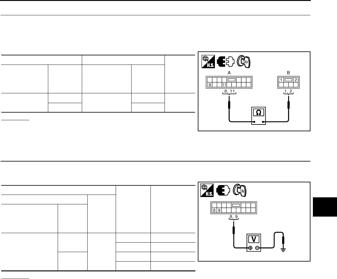 2. Check continuity between automatic drive positioner control unit connector and door mirror connector.
