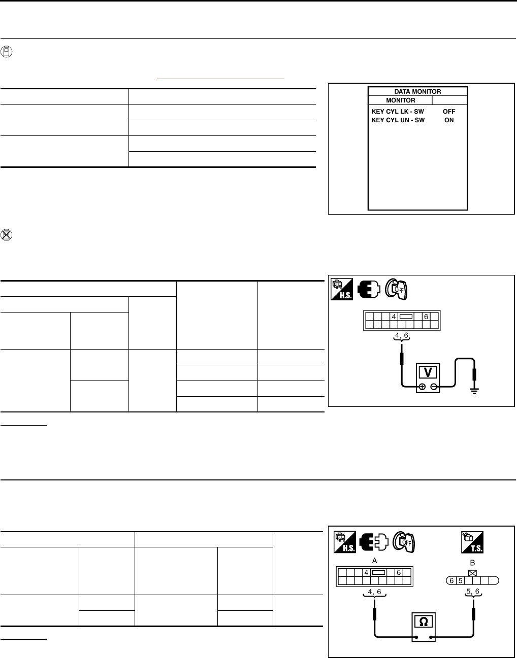 NG >> Repair or replace harness between automatic drive positioner control unit and door mirror con-