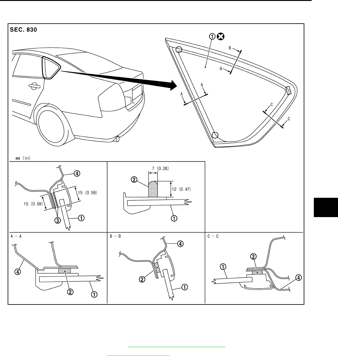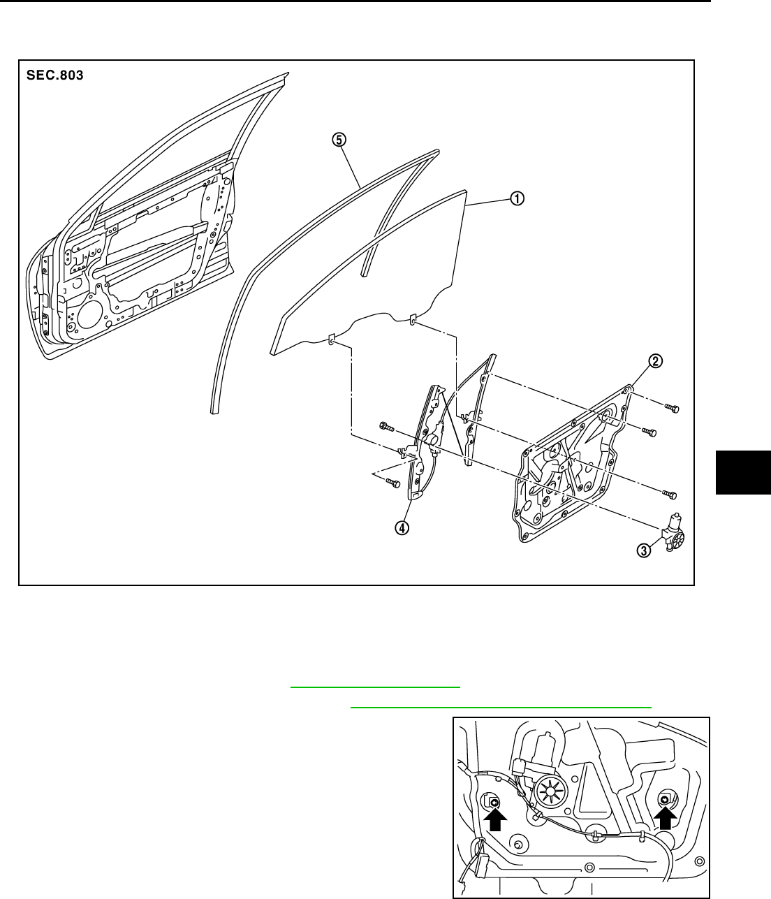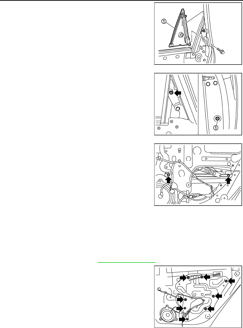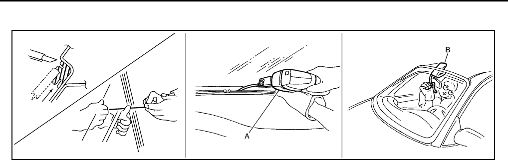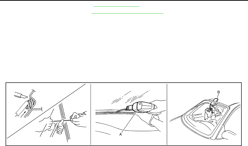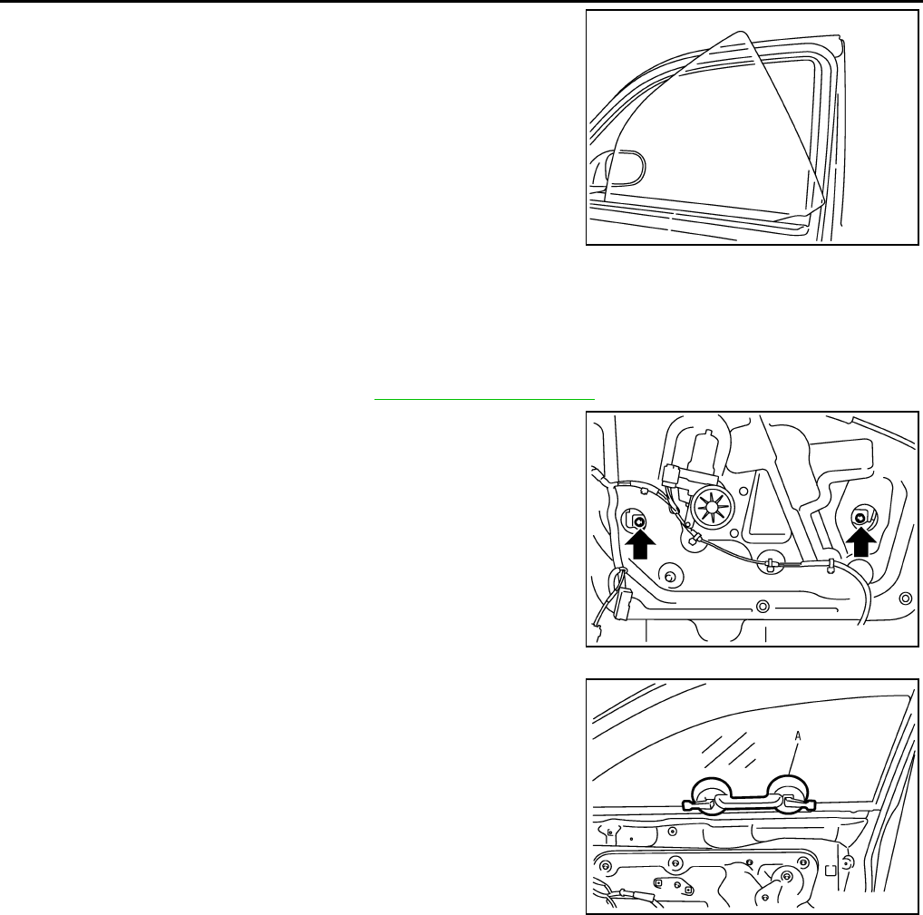 2. Remove the front door sash cover inner. Refer to EI-36, "FRONT DOOR SASH COVER INNER" .