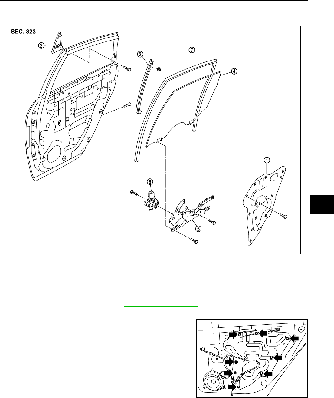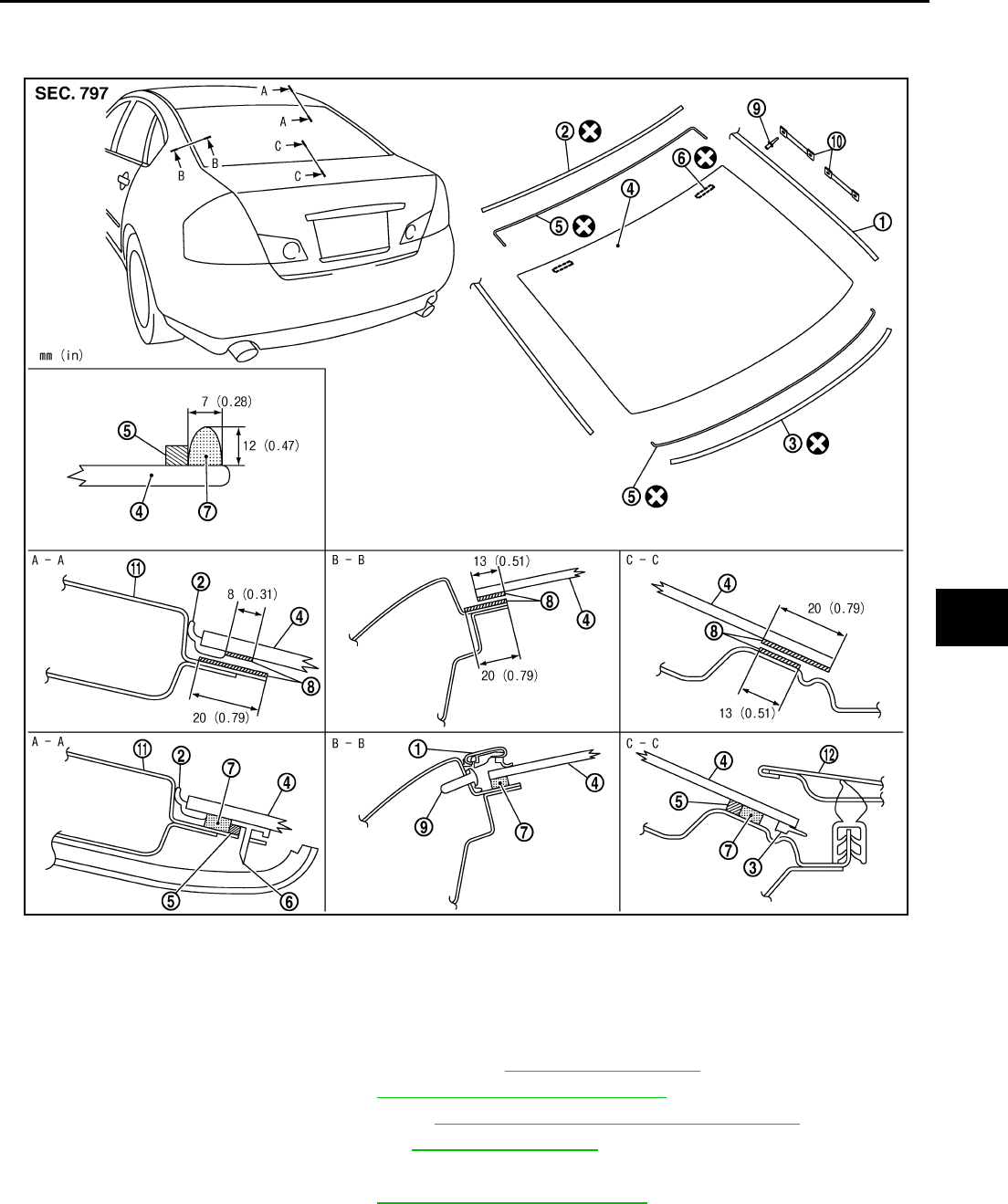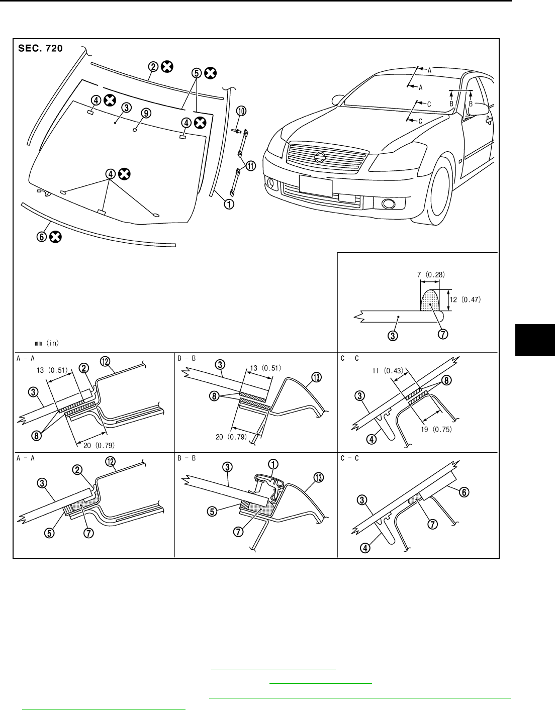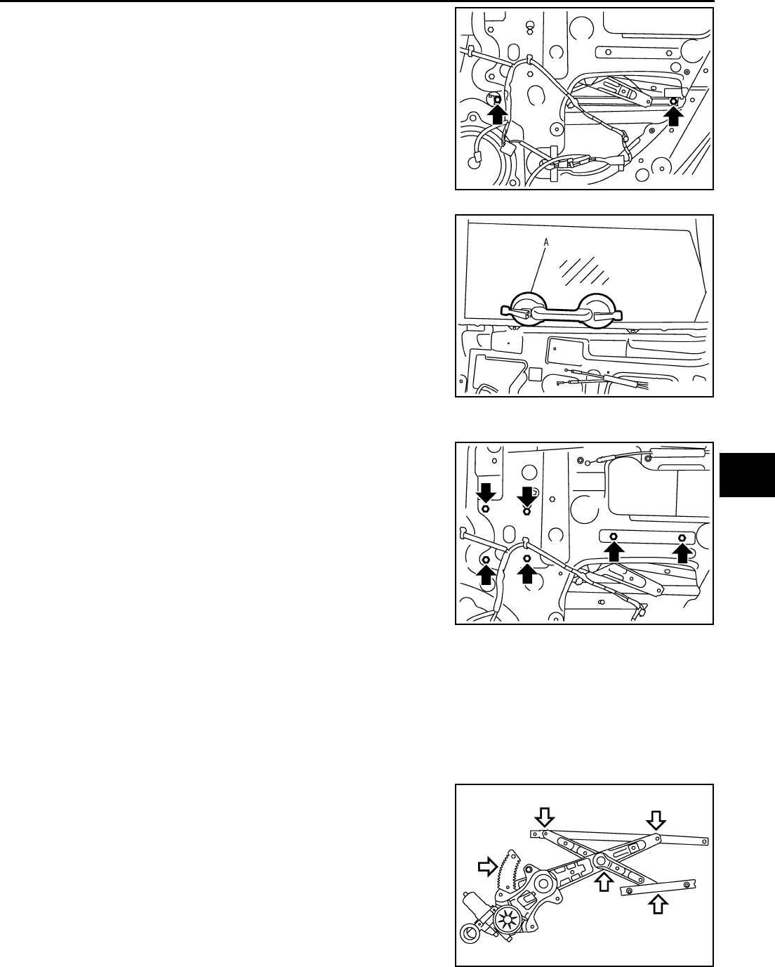 2. Remove the front door sash cover inner. Refer to EI-36, "FRONT DOOR SASH COVER INNER" .
