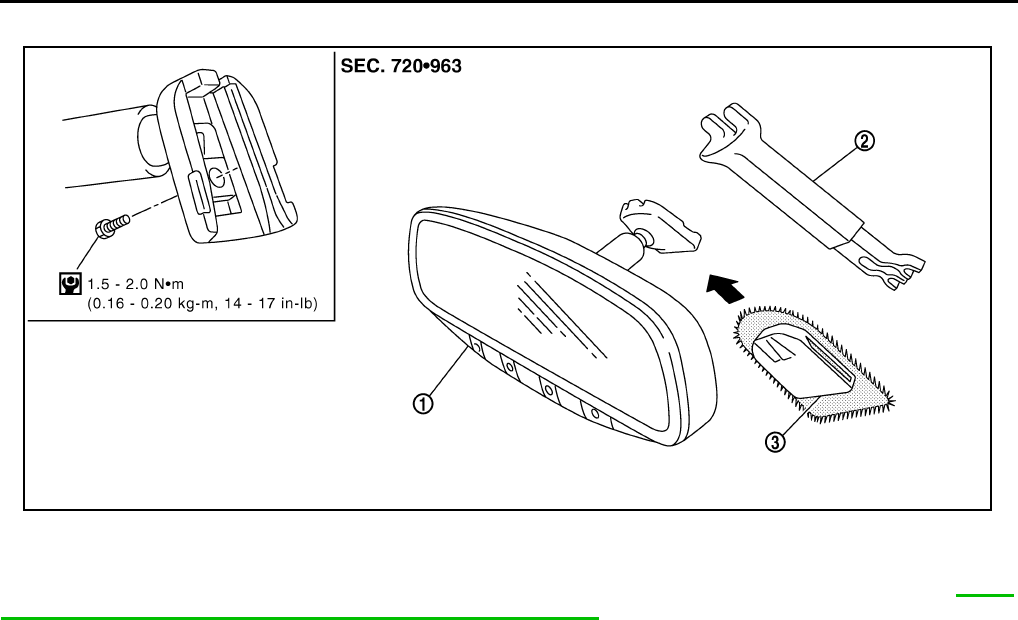 holder bracket (2) and push up two pawls (3) to remove mirror