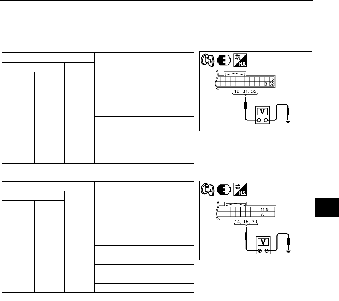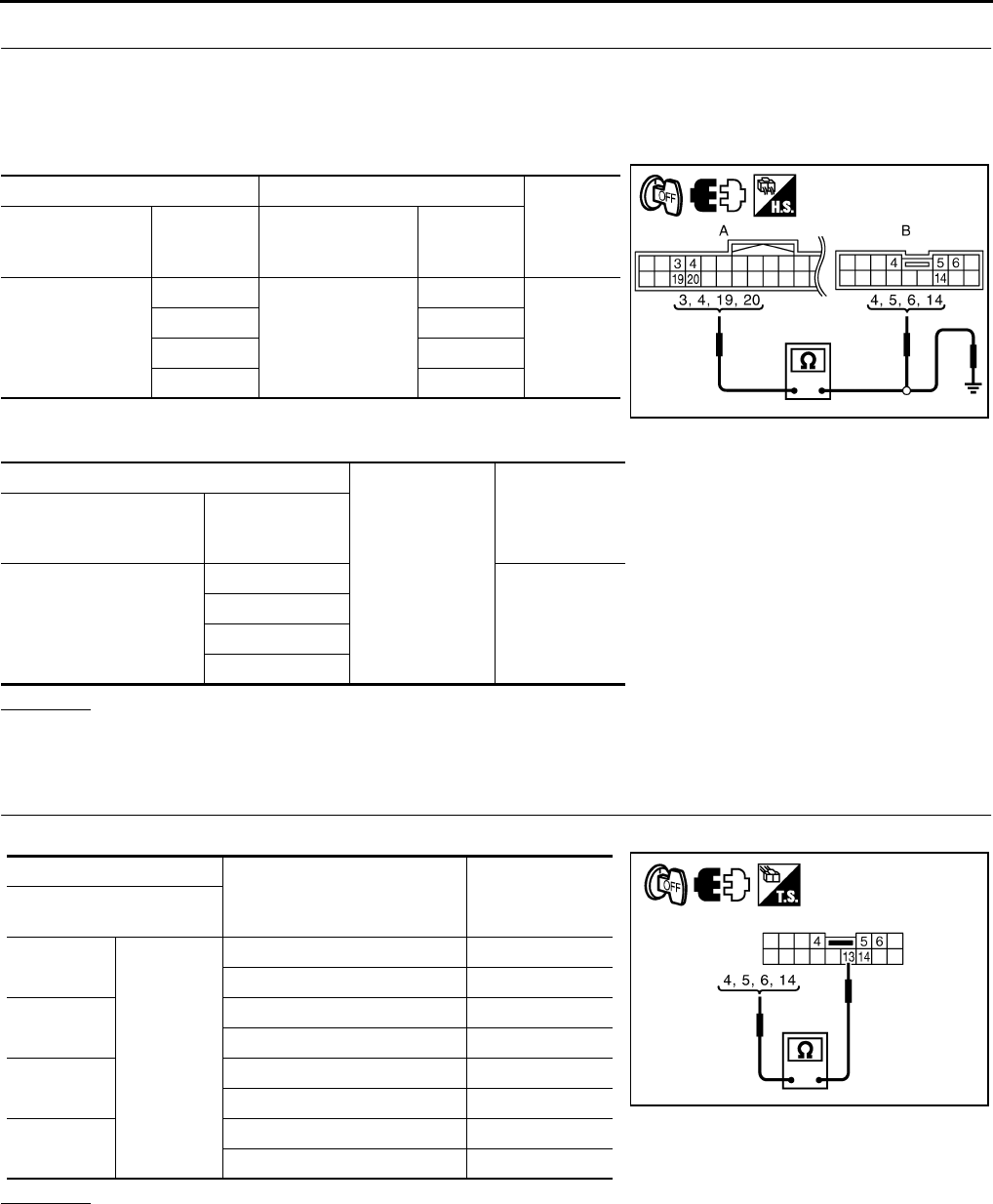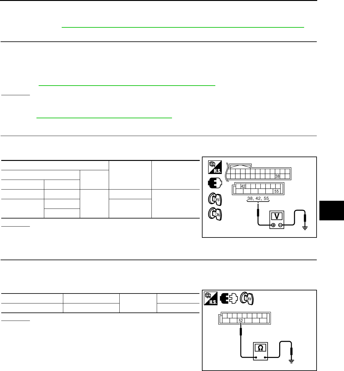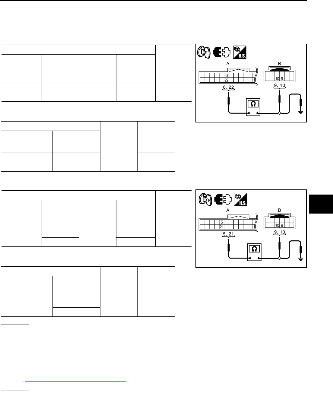 3. Check continuity between automatic drive positioner control unit connector and door mirror connector.