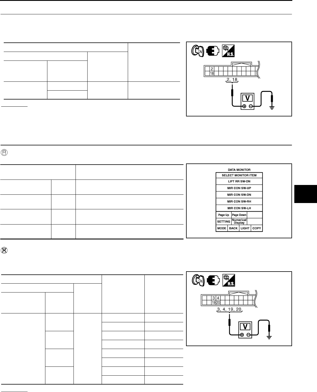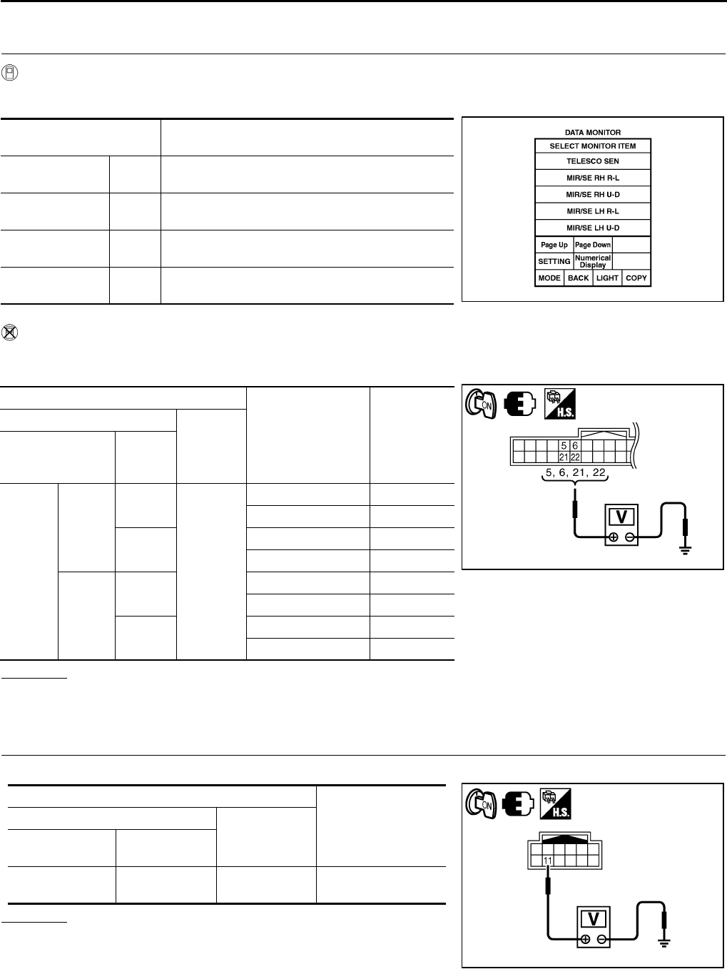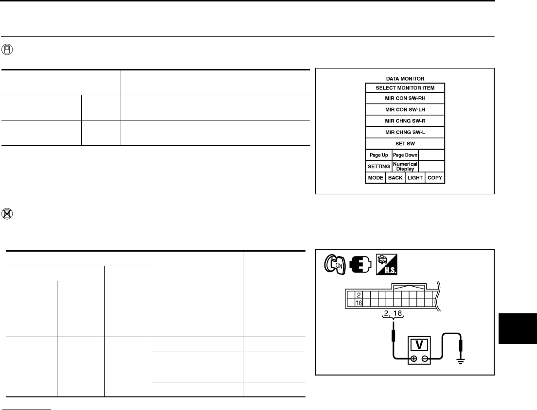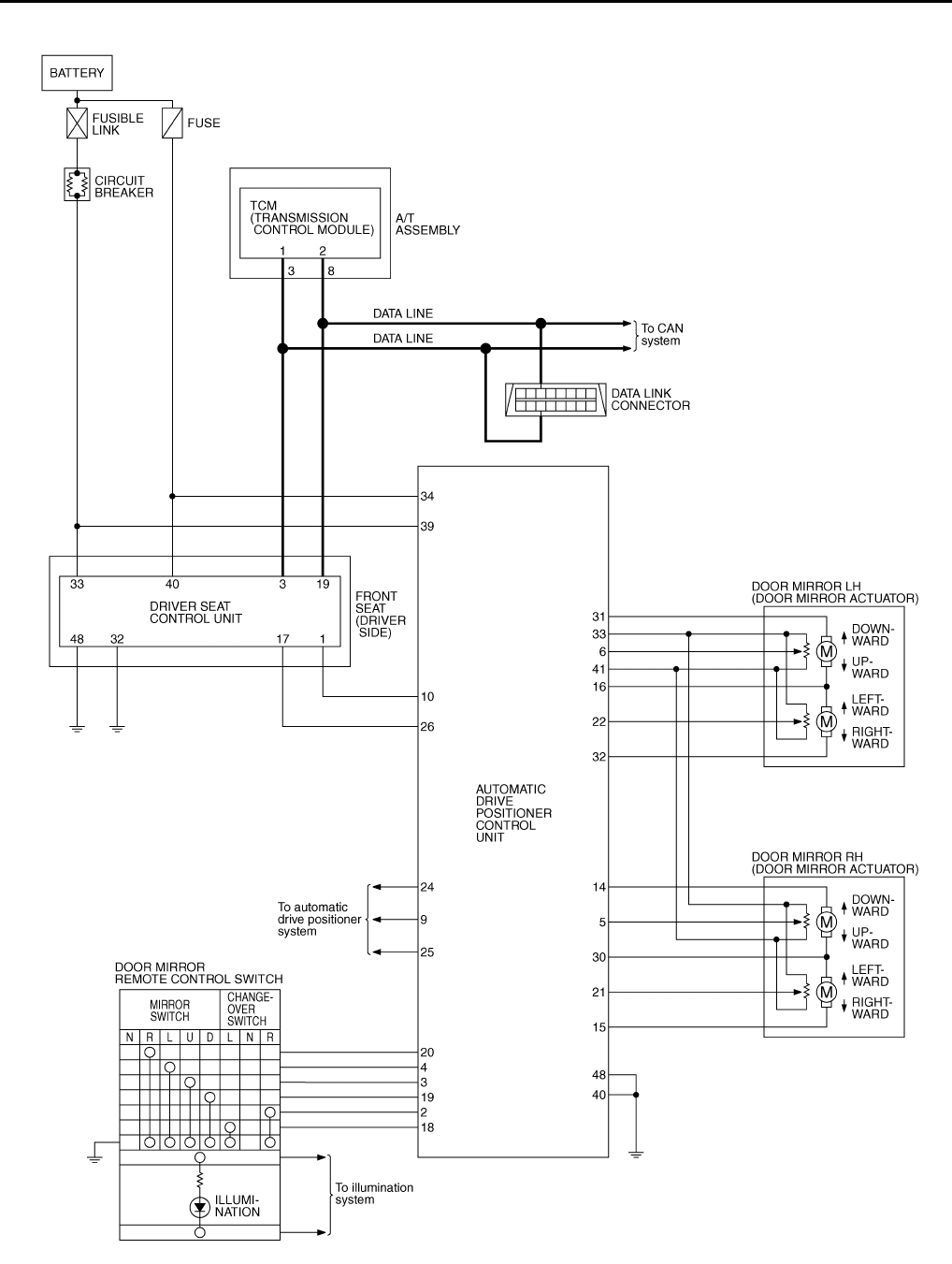 Automatic drive positioner interlocking door mirror. Refer to SE-11, "AUTOMATIC DRIVE POSITIONER" .