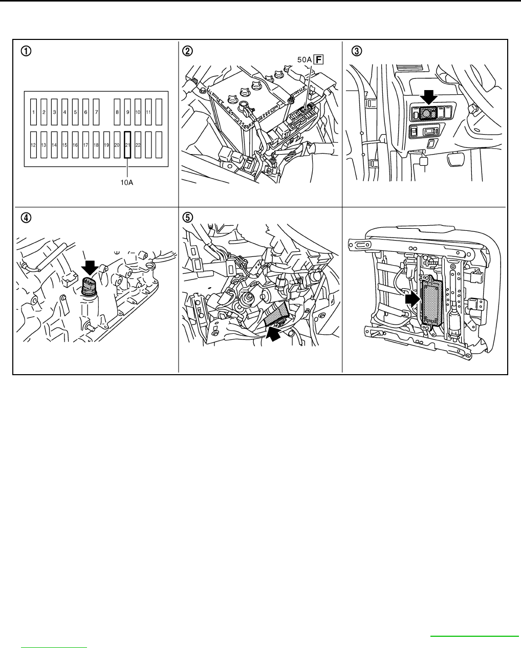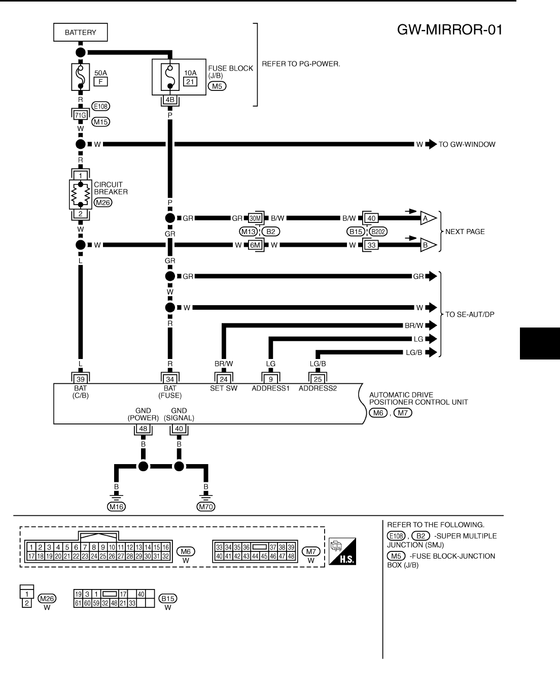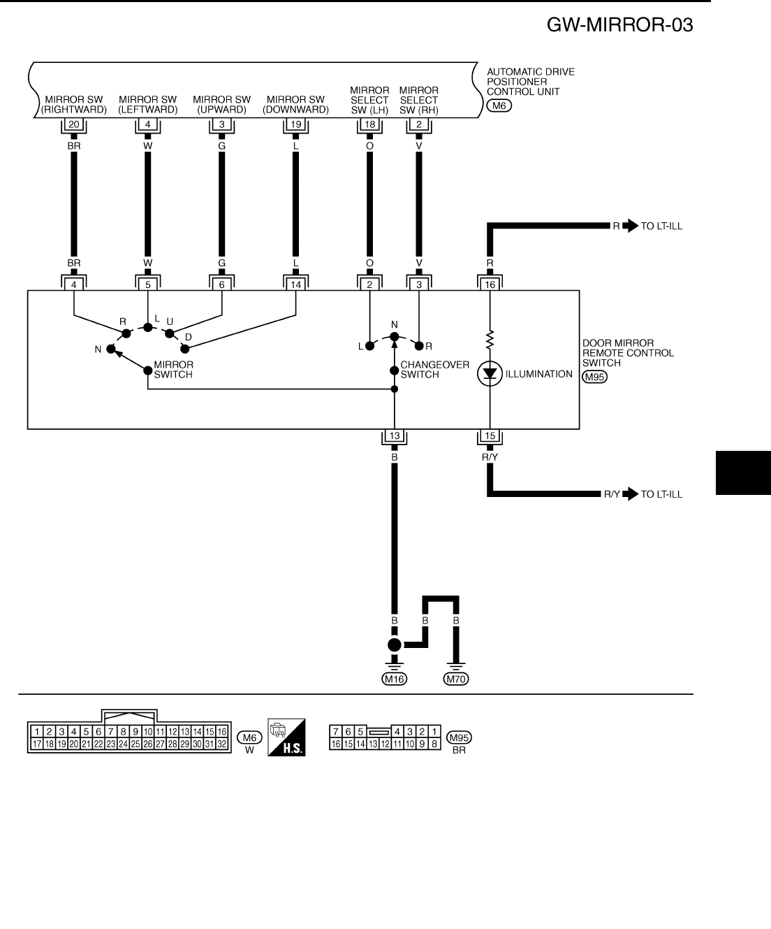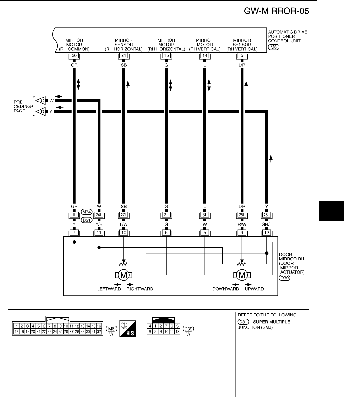 Automatic drive positioner interlocking door mirror. Refer to SE-11, "AUTOMATIC DRIVE POSITIONER" .