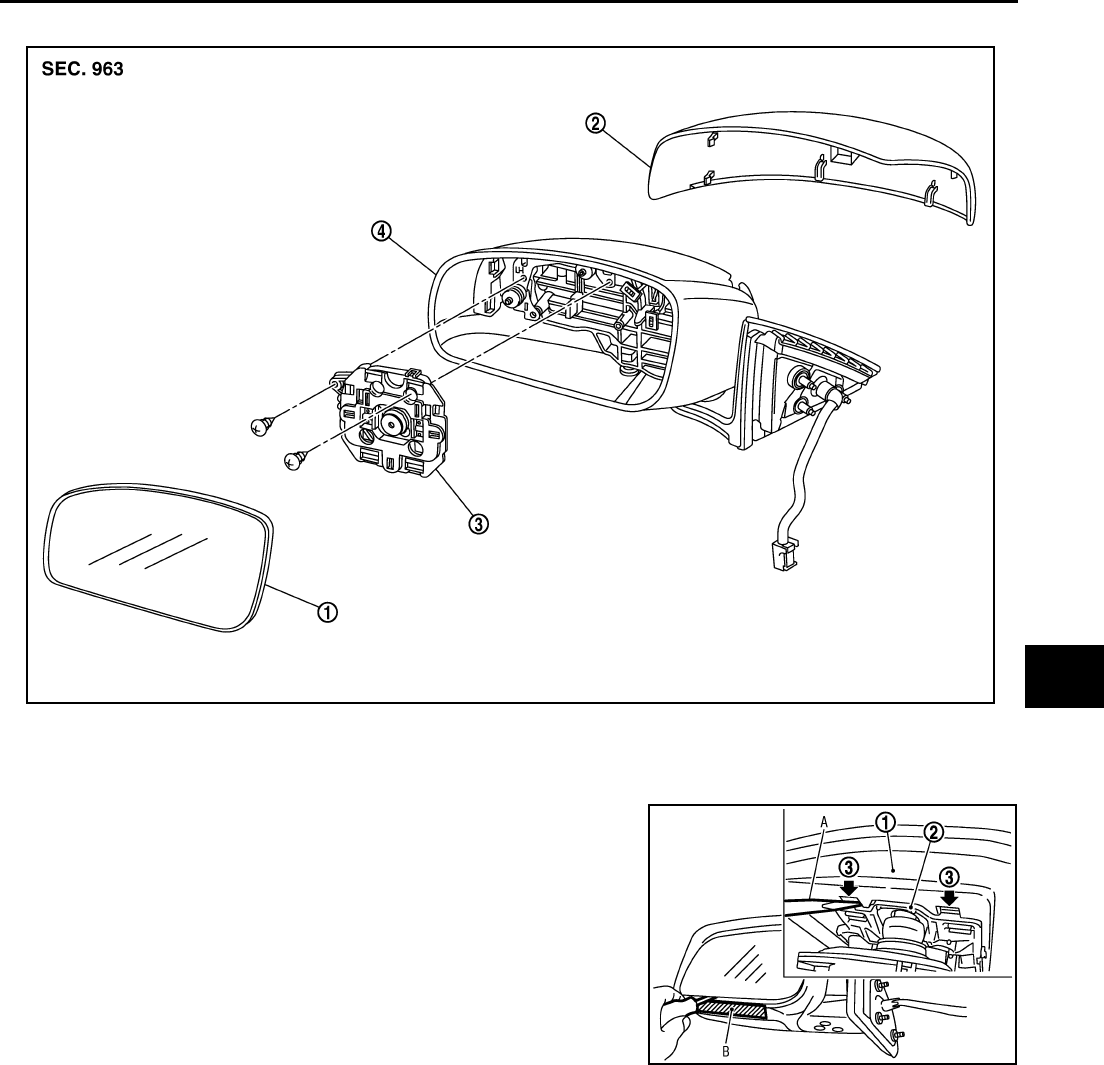 1. Mirror housing 2. Mirror cover 3. Power unit