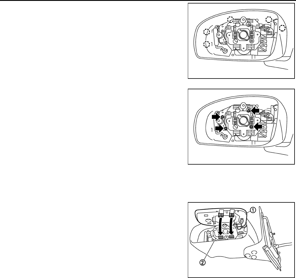 4. Remove the door mirror mounting nuts, and remove the door mirror assembly.