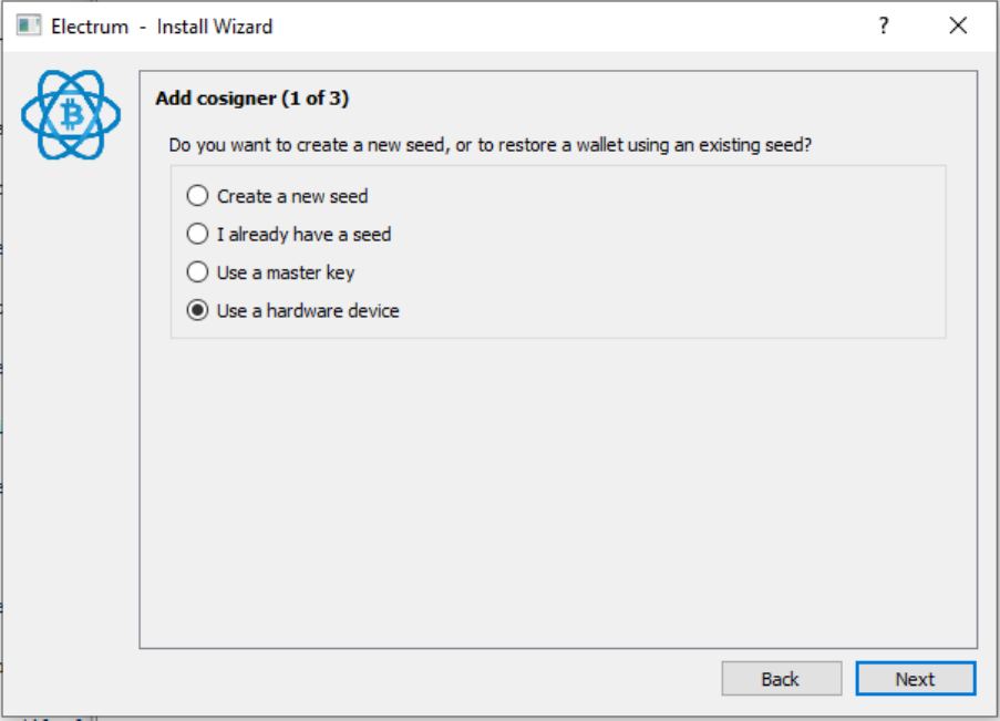 • 2 different Hardware-wallets (Trezor, Ledger, Coldcard etc). Make sure the hardware-wallets
