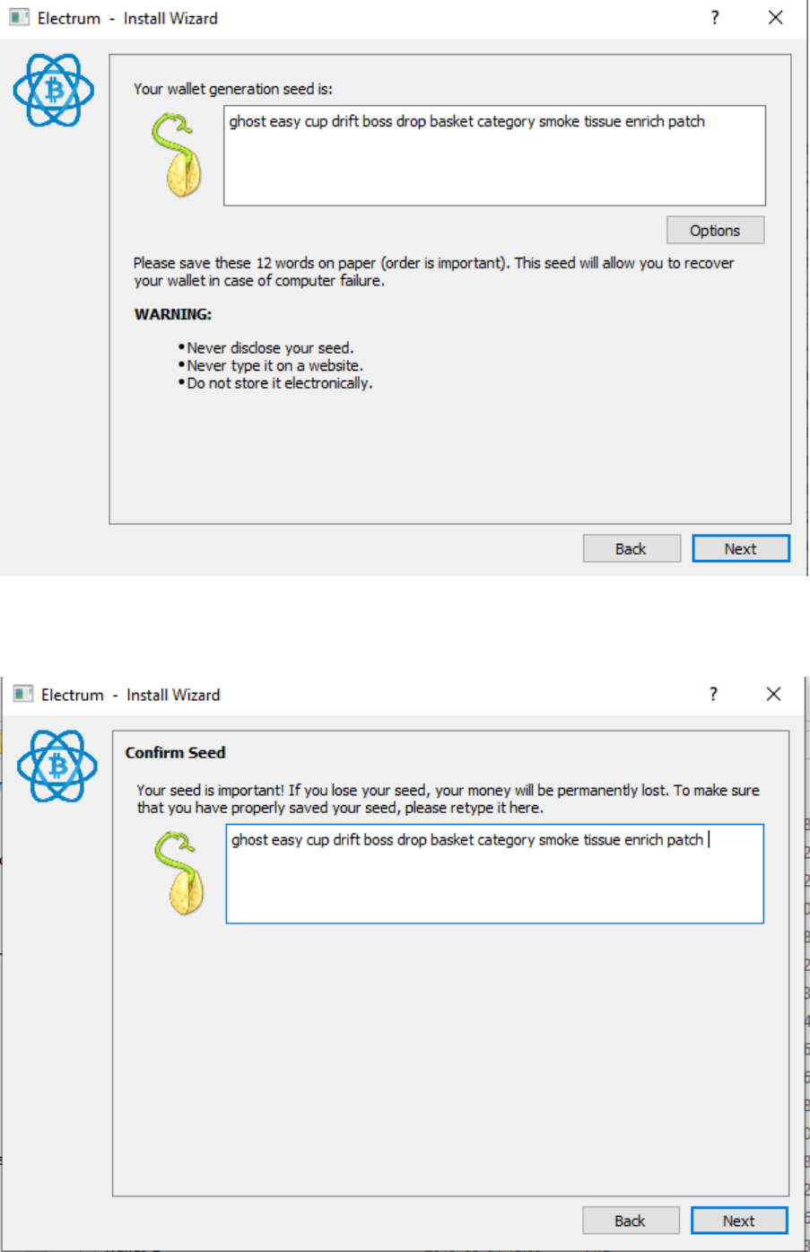 note or your wallet file in Electrum, they would be able to derive all your addresses. If they