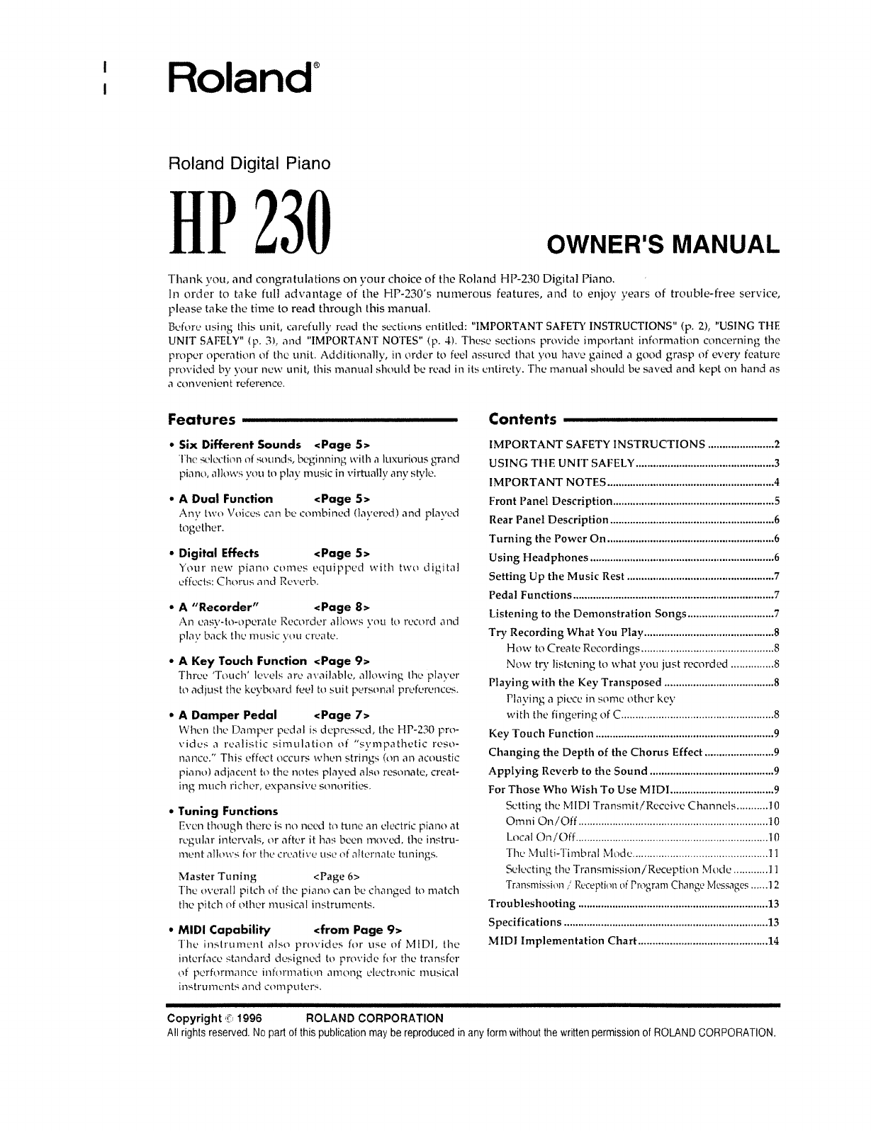 Roland Corporation HP-230 Owner's Manual hp-230_om Roland Corporation - HP-230 - Owner's Manual