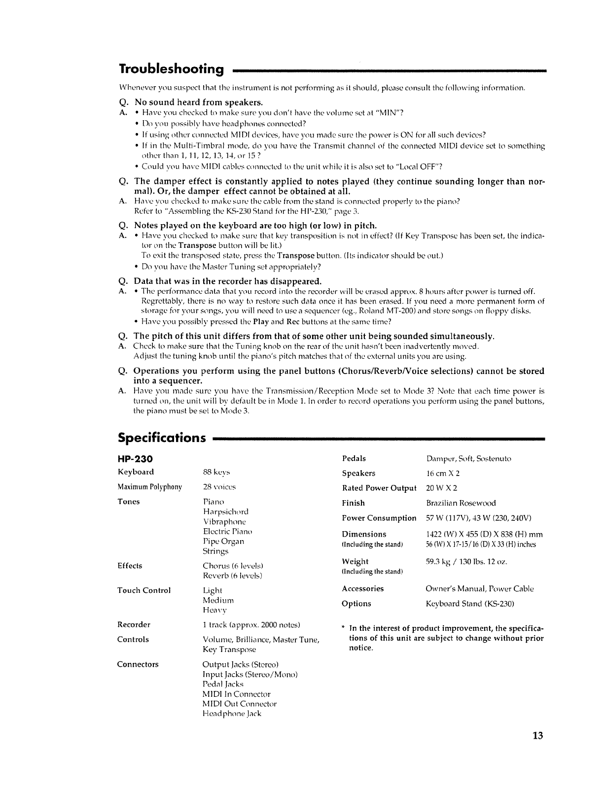 User Manual: Roland Corporation HP-230 Owner's Manual Roland Corporation - HP-230 - Owner's Manual