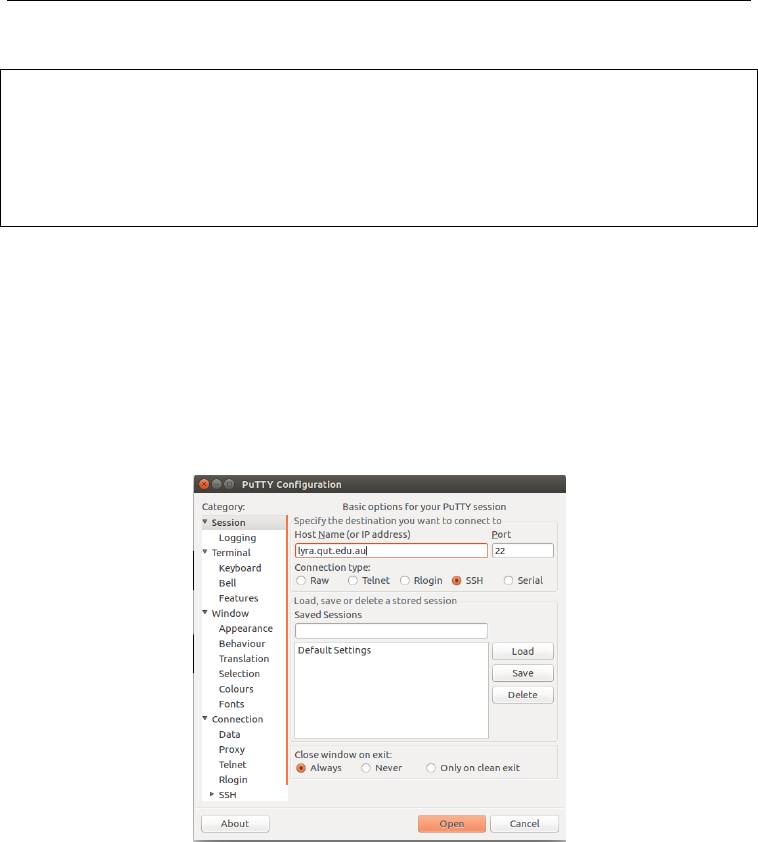downloaded, simply open the putty window and enter lyra.qut.edu.au into the bar