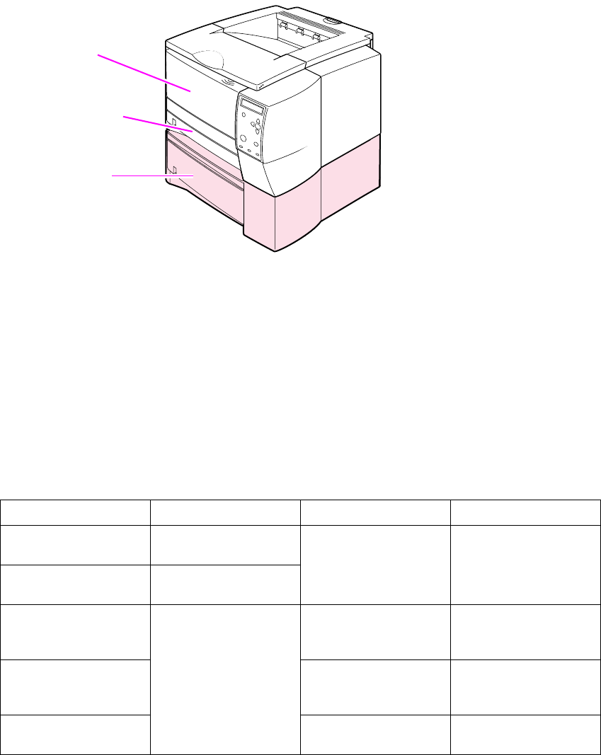 - Optional 250sheet tray (tray2 or tray3) paper sizes