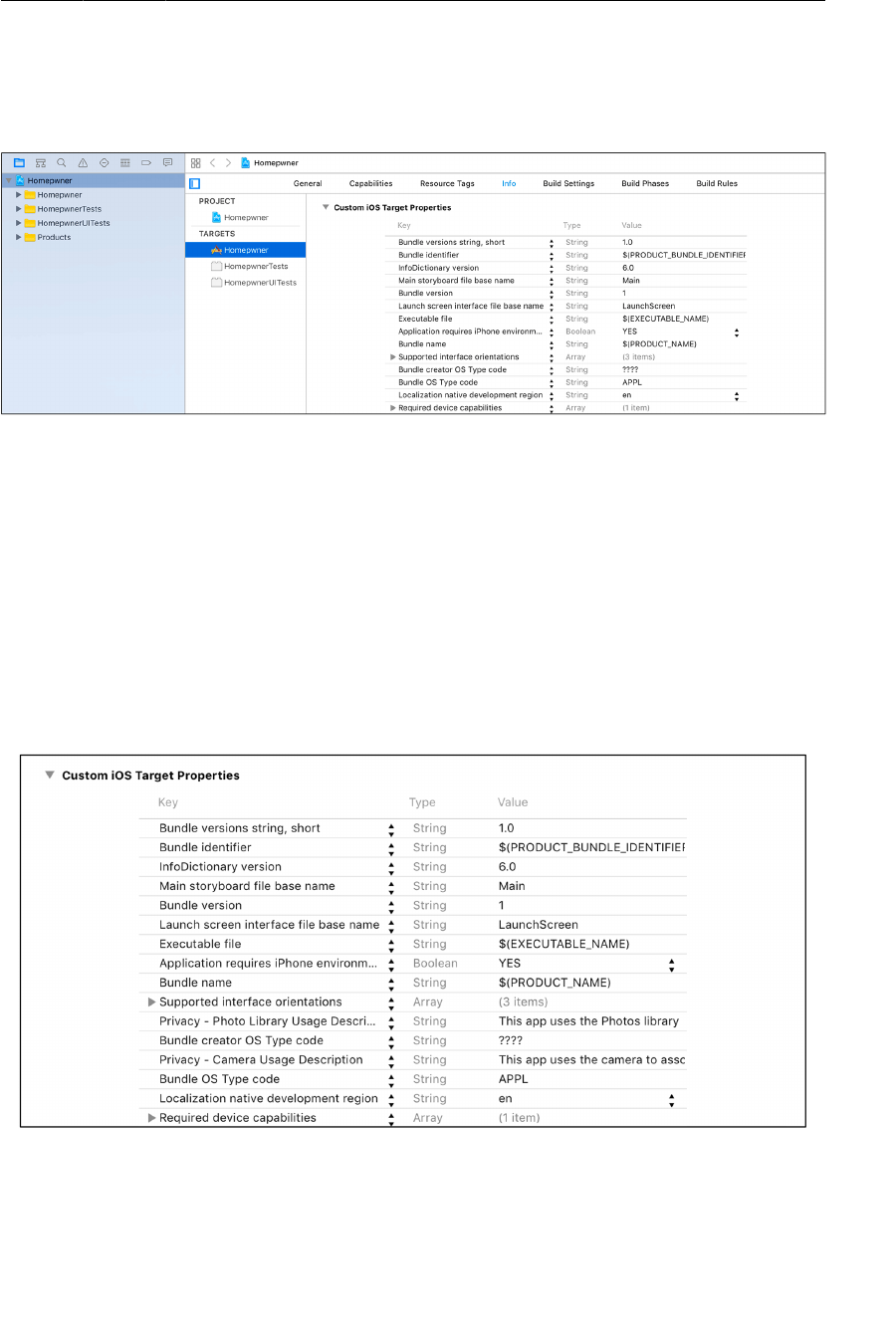 projects, iOS simulator)