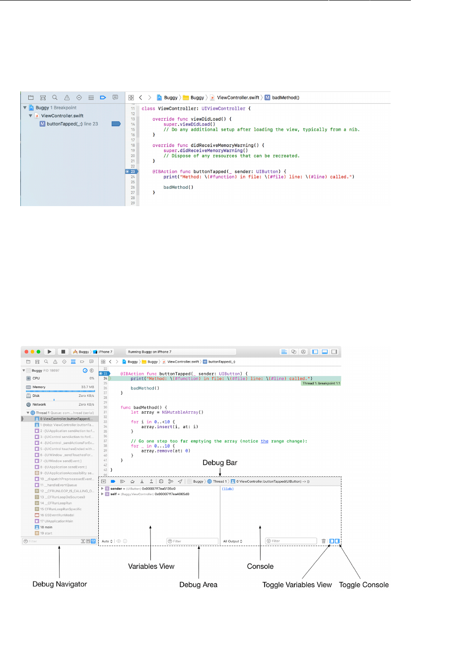 debug area, 167