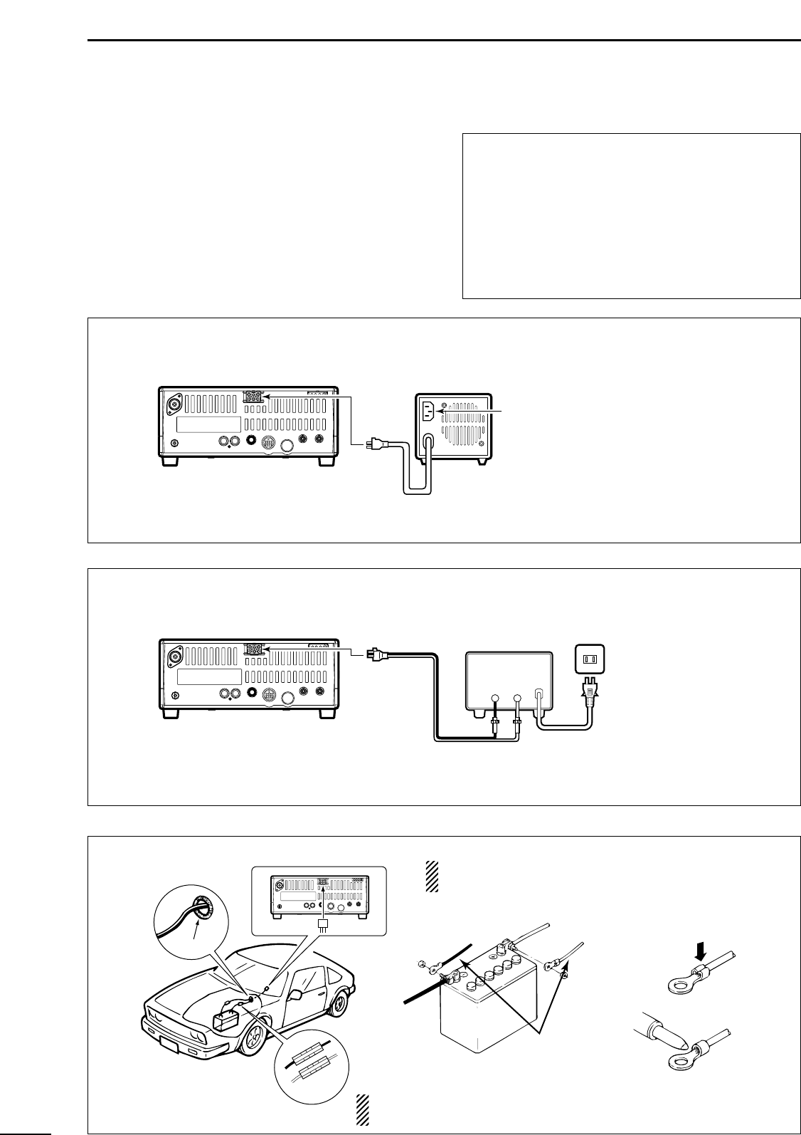battery, to the [DC13.8V] jack on the transceiver rear