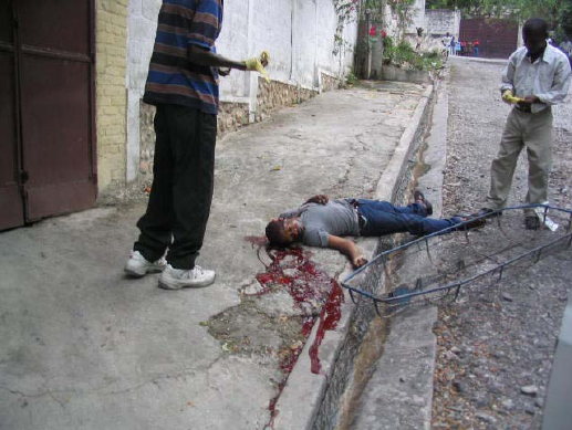 by opposition supporters after the departure of President Aristide. Death threats, and in