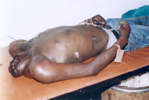 The report contains several graphic photographs of victims of human rights violations.