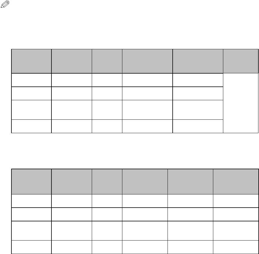 The table below represents the available paper sizes and feed locations. The