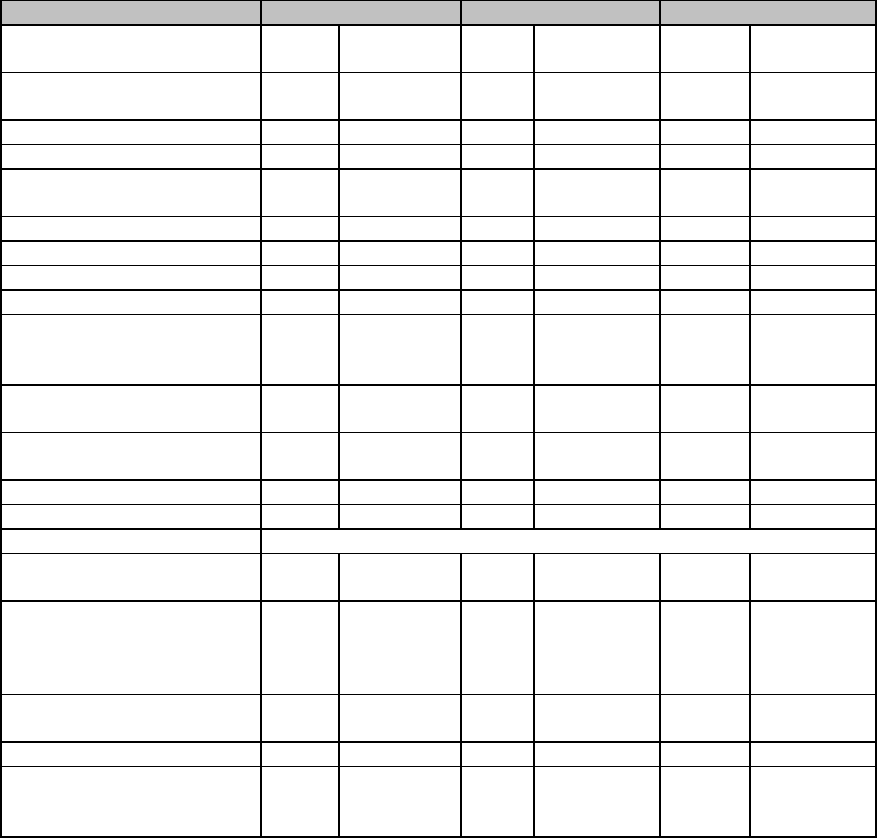 : Available —: Unavailable