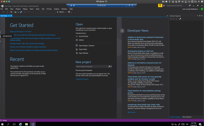 Una vez la máquina virtual ha sido creado y se ha instalado el visual studio 2017