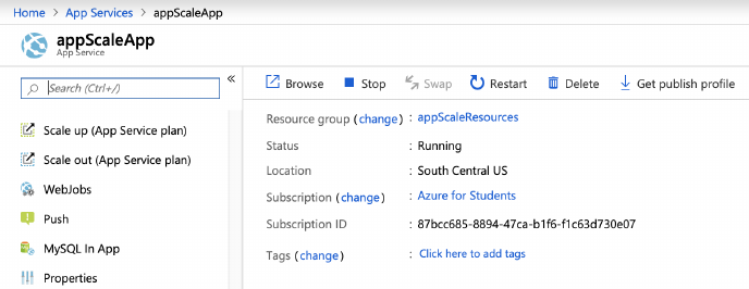 --name appScaleApp --settings WEBSITE_NODE_DEFAULT_VERSION=10.14.1