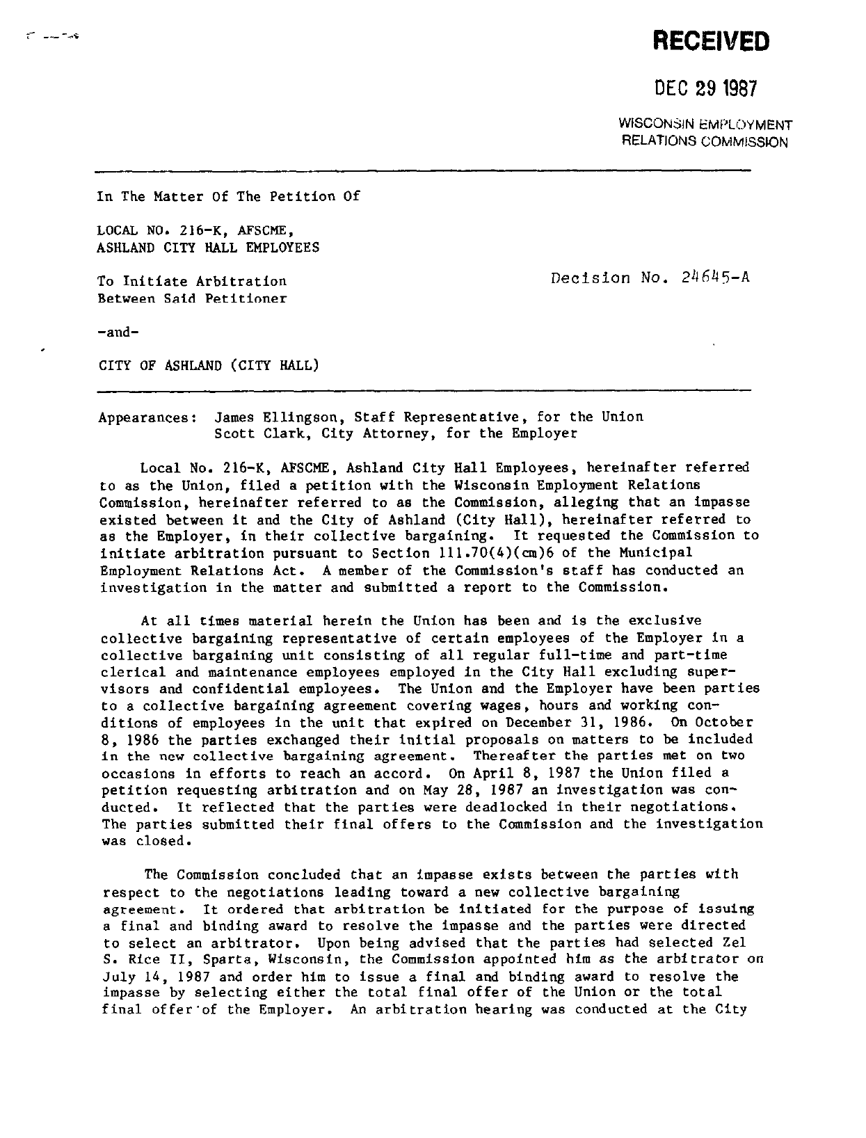 Ashland, City Of (Overall Non Professional), Dec. No. 24645 A ( Rice, 12/21/87 ) (Employer) Int24645