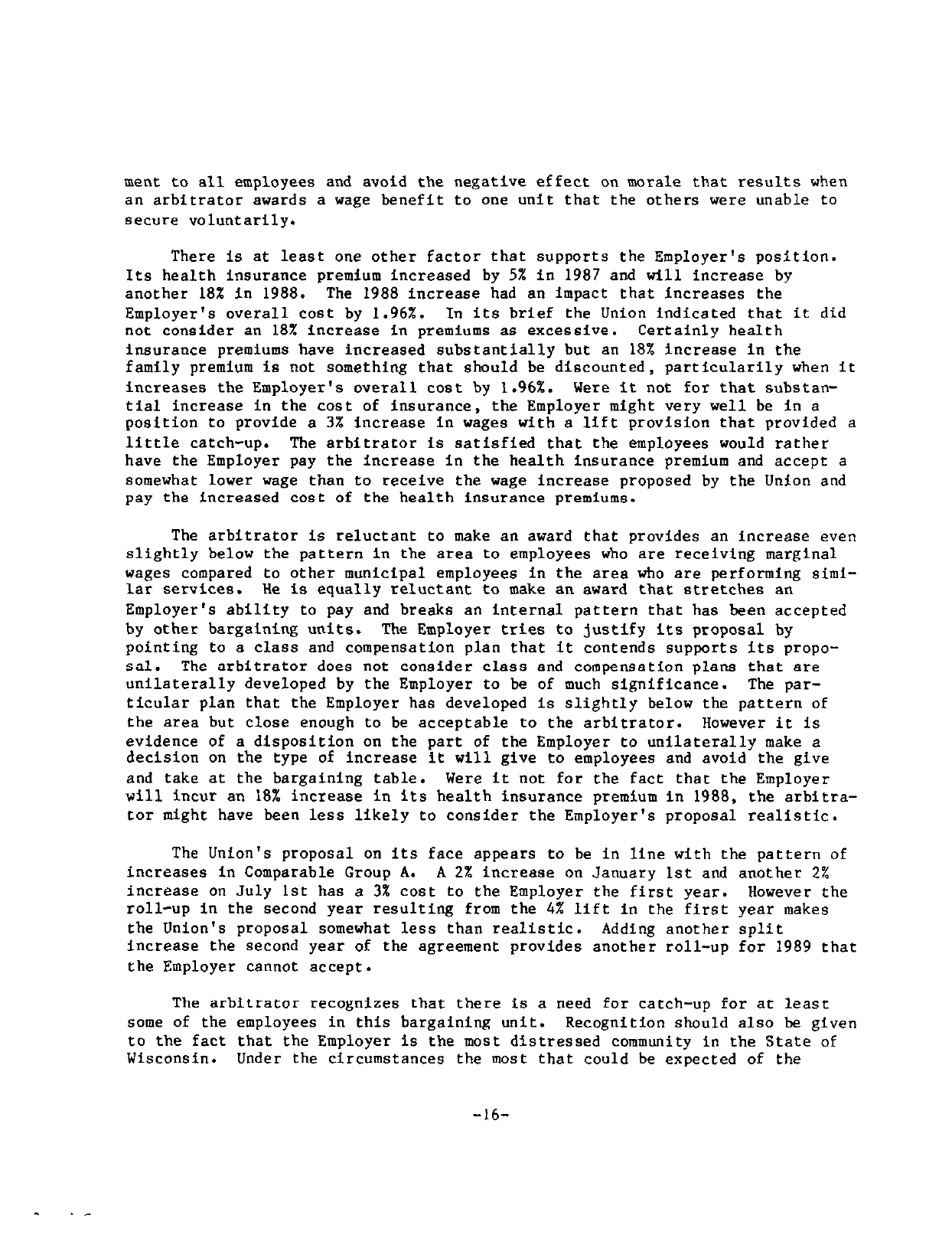 will incur an 18% increase in its health insurance premium in 1988, the arbitra-