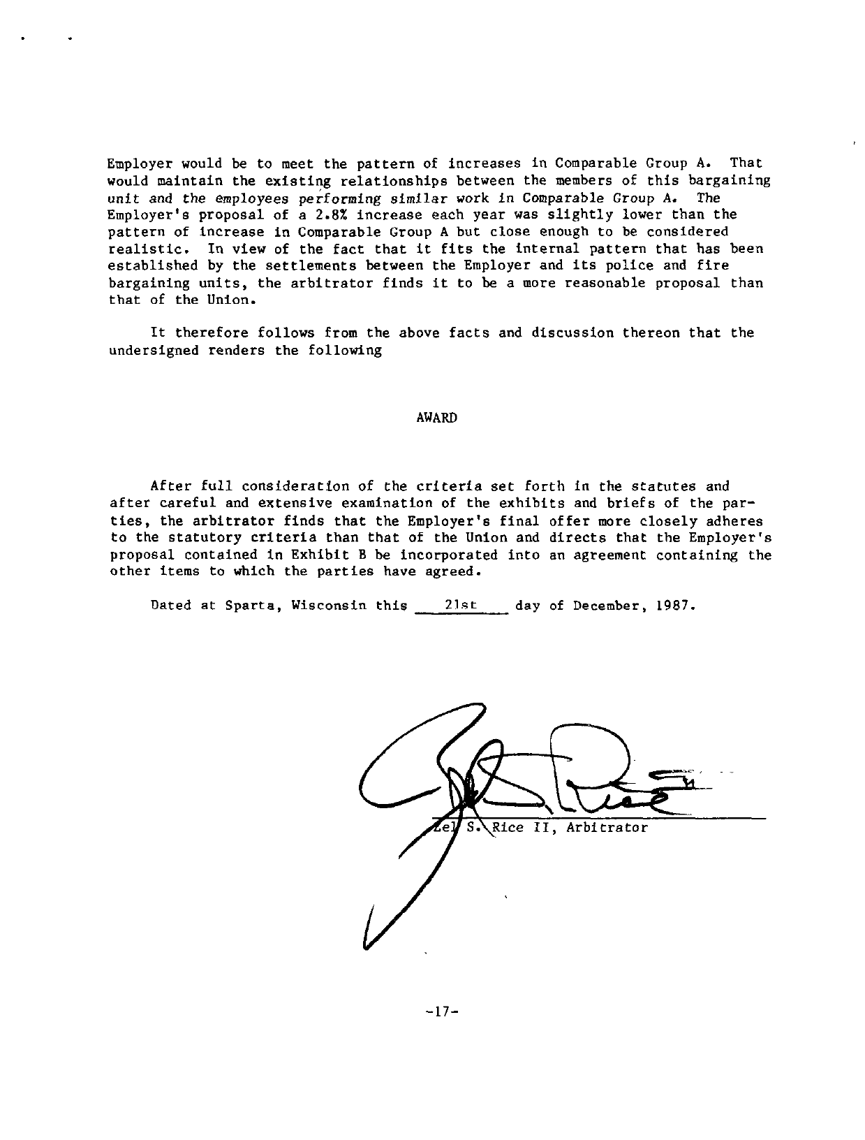 S. Rice II, Sparta, Wisconsin, the Commission appointed him as the arbitrator on