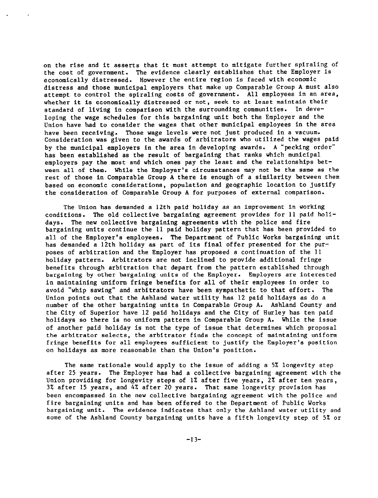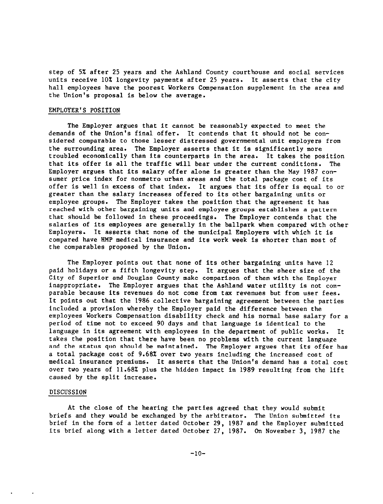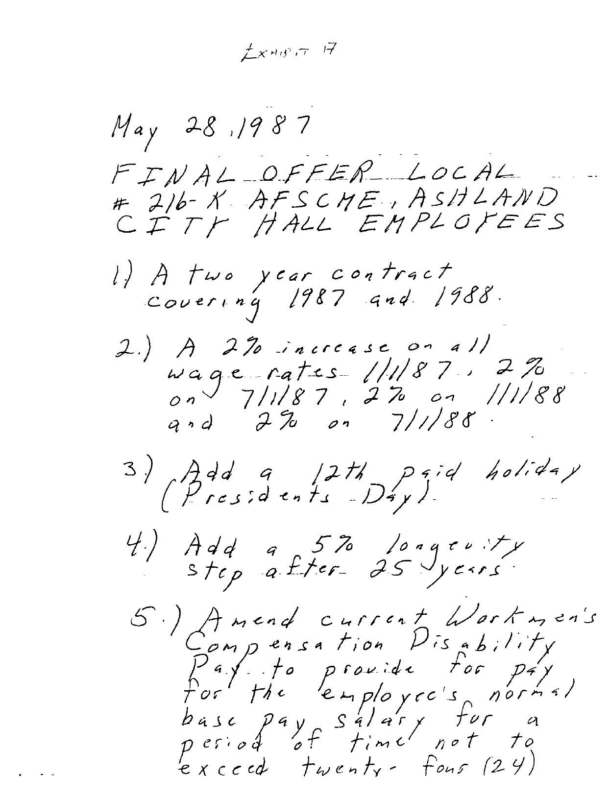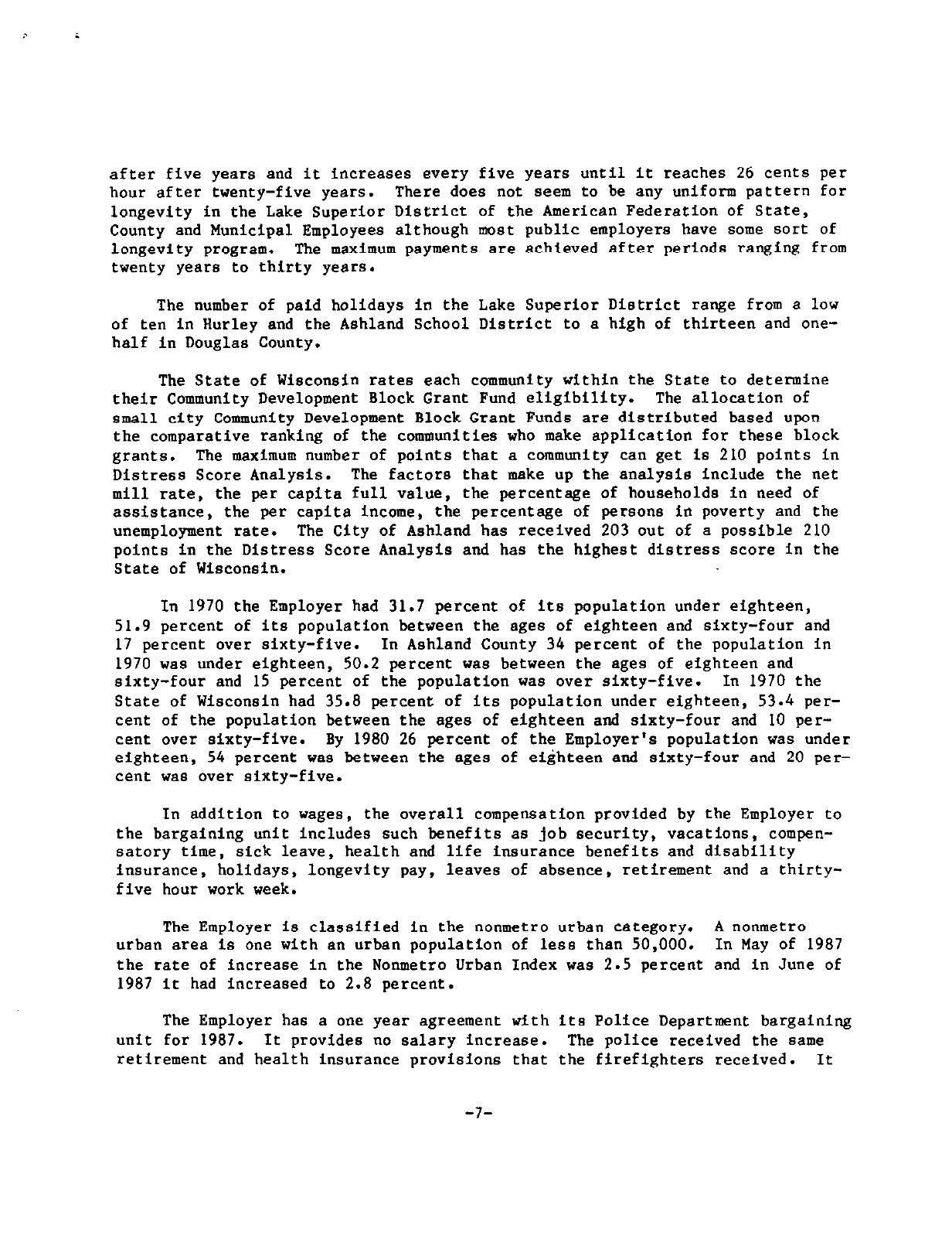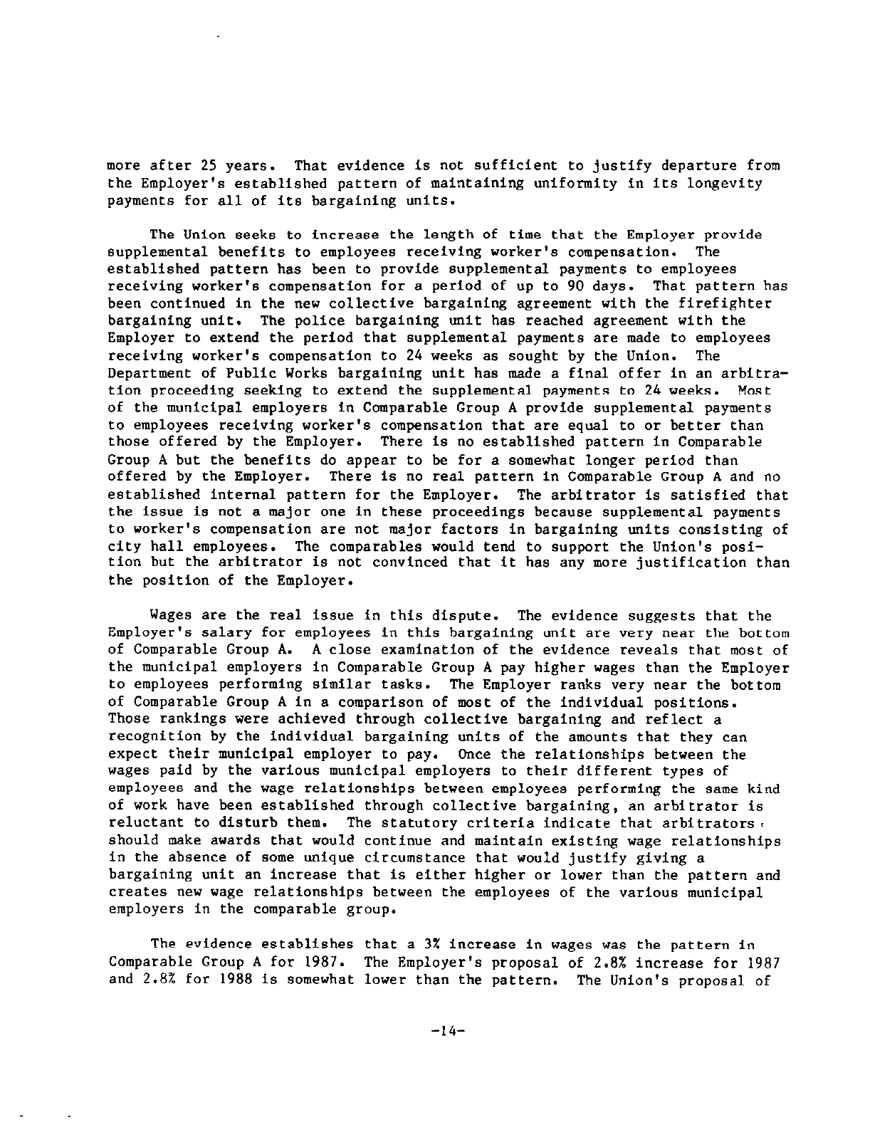 The Employer has offered its public works employees a 2.8% increase in 1987 and
