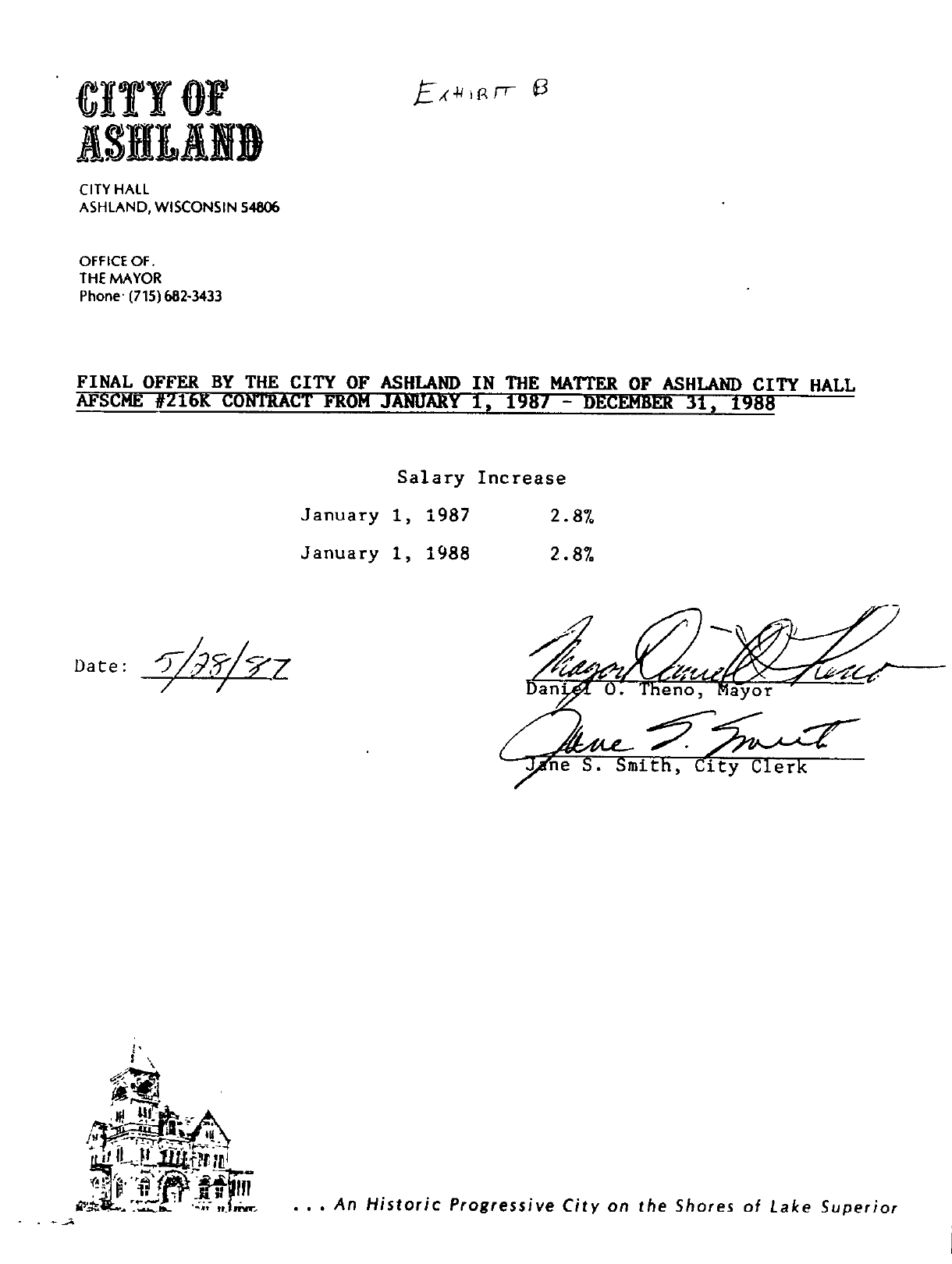 FINAL OFFER BY THE CITY OF ASHLAND IN THE MATTEB OF ASHLAND CITY HALL