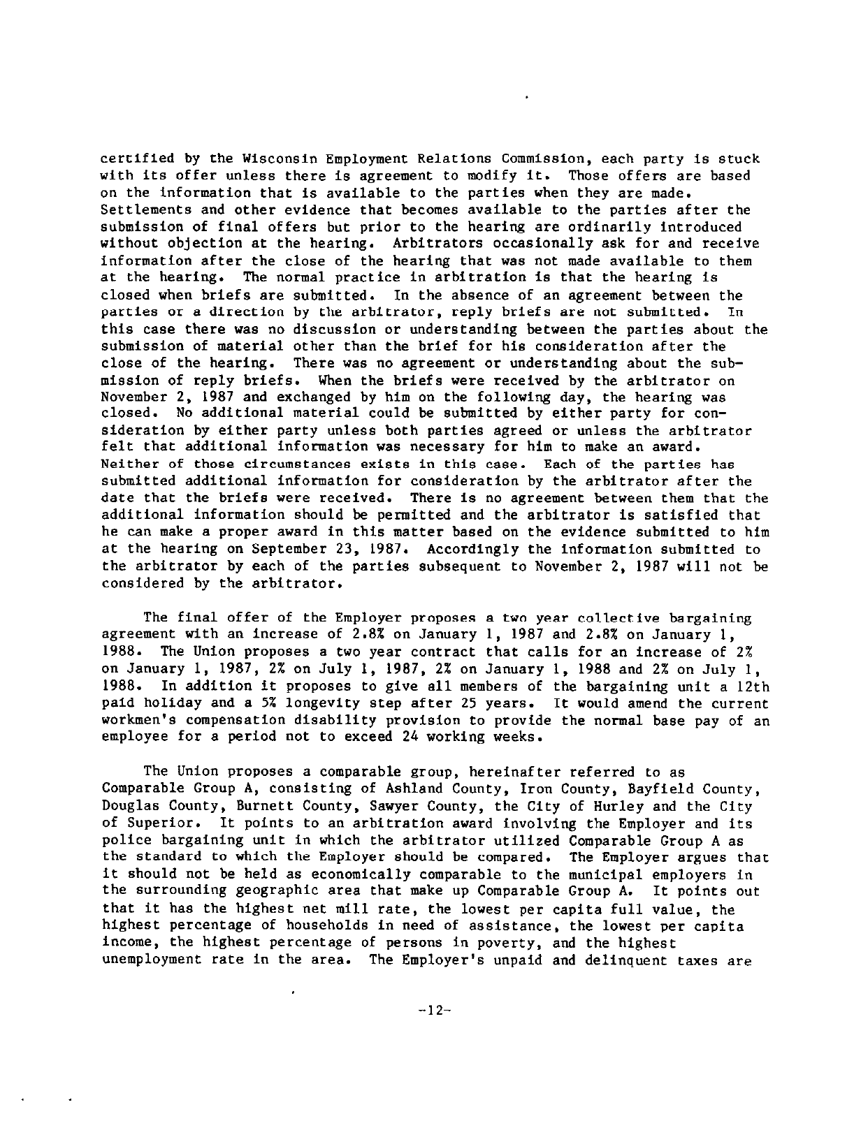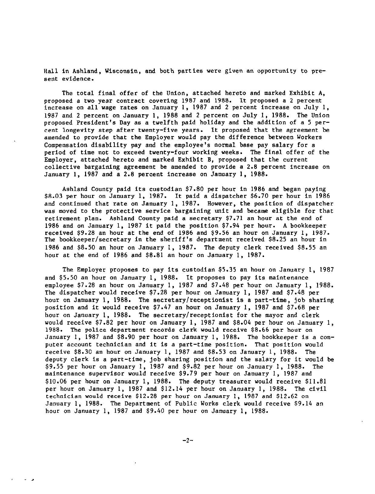 Hall in Ashland, Wisconsin, and both parties were given an opportunity to pre-