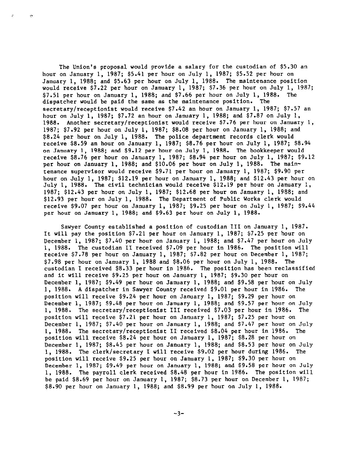 The Employer proposes to pay its custodian $5.35 an hour on January 1, 1987