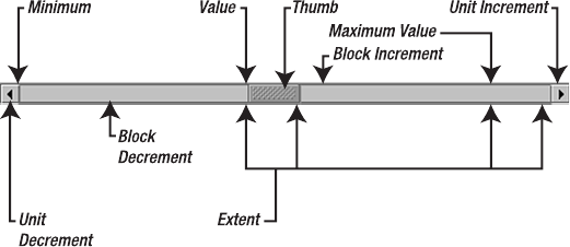 JScrollBar component, 422, 426