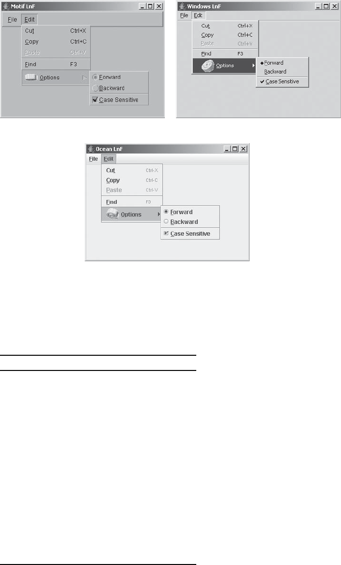 CHAPTER 6 Swing Menus and Toolbars . . . . . . . . . . . . . . . . . . . . . . . . . . . . . . . . . 151