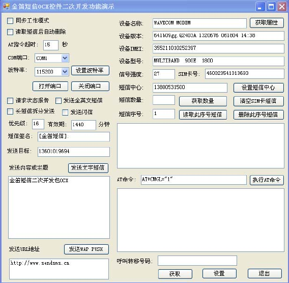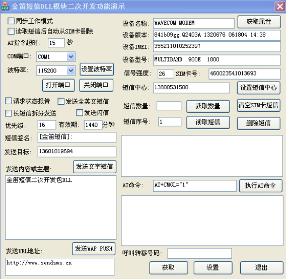 收发功能的开发包。利用 JindiSMS 可以实现跨平台的短信发