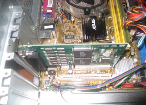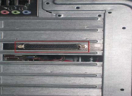 串口卡(如图 1)插在空闲的 PCI 槽中(如图 2)。