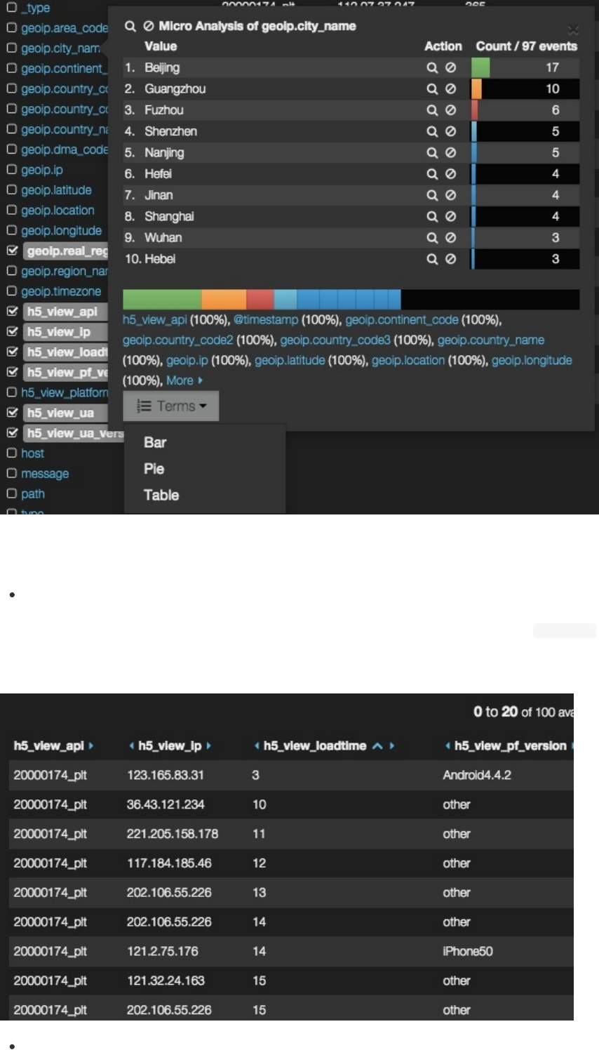 date_histogram/geohash_grid/terms聚合函数,创建可视化模型,然后带着当前页这些设定(前面说过,各app之间通