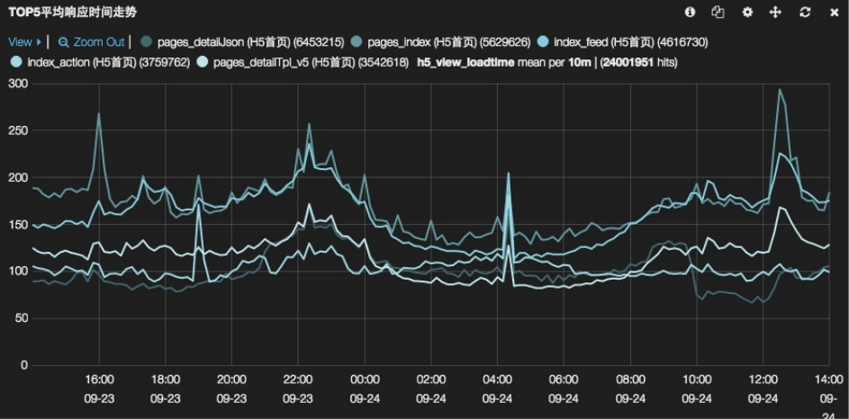 通过Kibana的交互式界面可以很快的将异常时间或者事件范围缩小到秒级别或者个位数。期望一个完美的系统可以给
