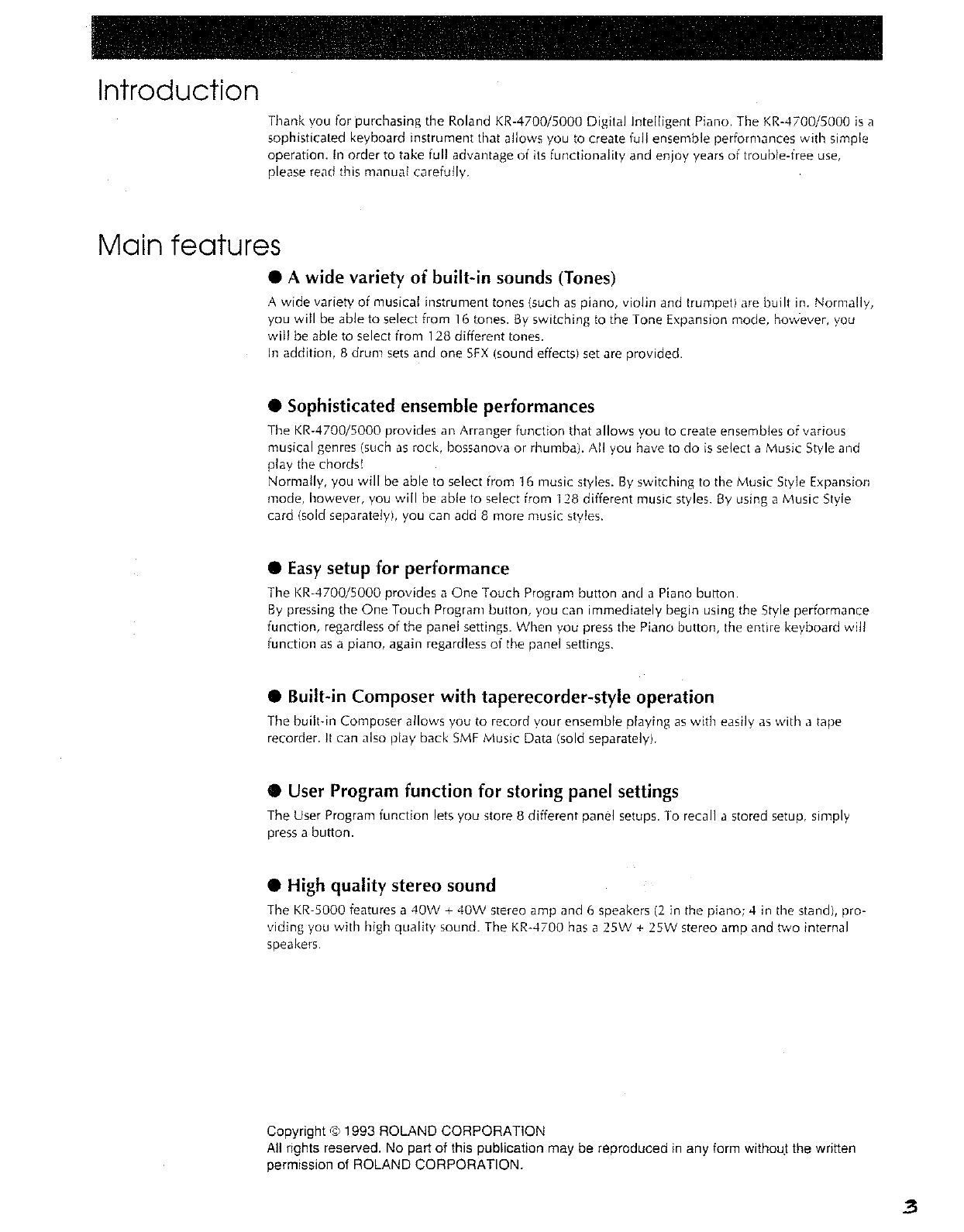 Roland Corporation KR 4700 Owner's Manual 5000 Om