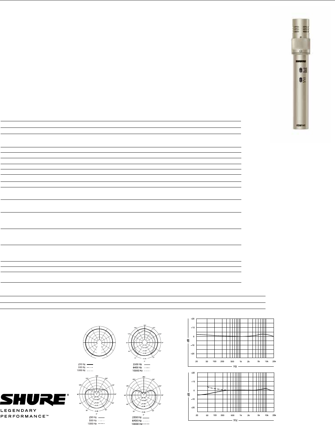 Shure KSM141 Specification Sheet English