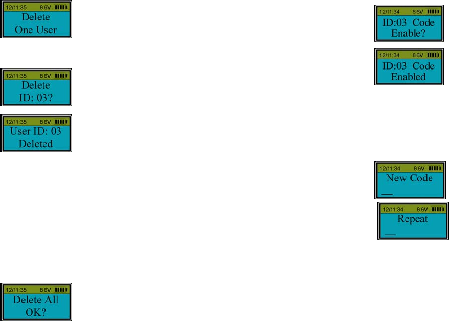 fully, press “▲” or “▼” to select “Disable User Code”, press