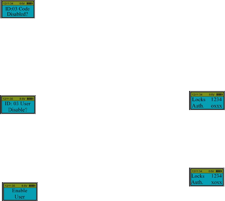 “▲” or “▼” to select “Disable User”. Press “▲” or “▼” to select