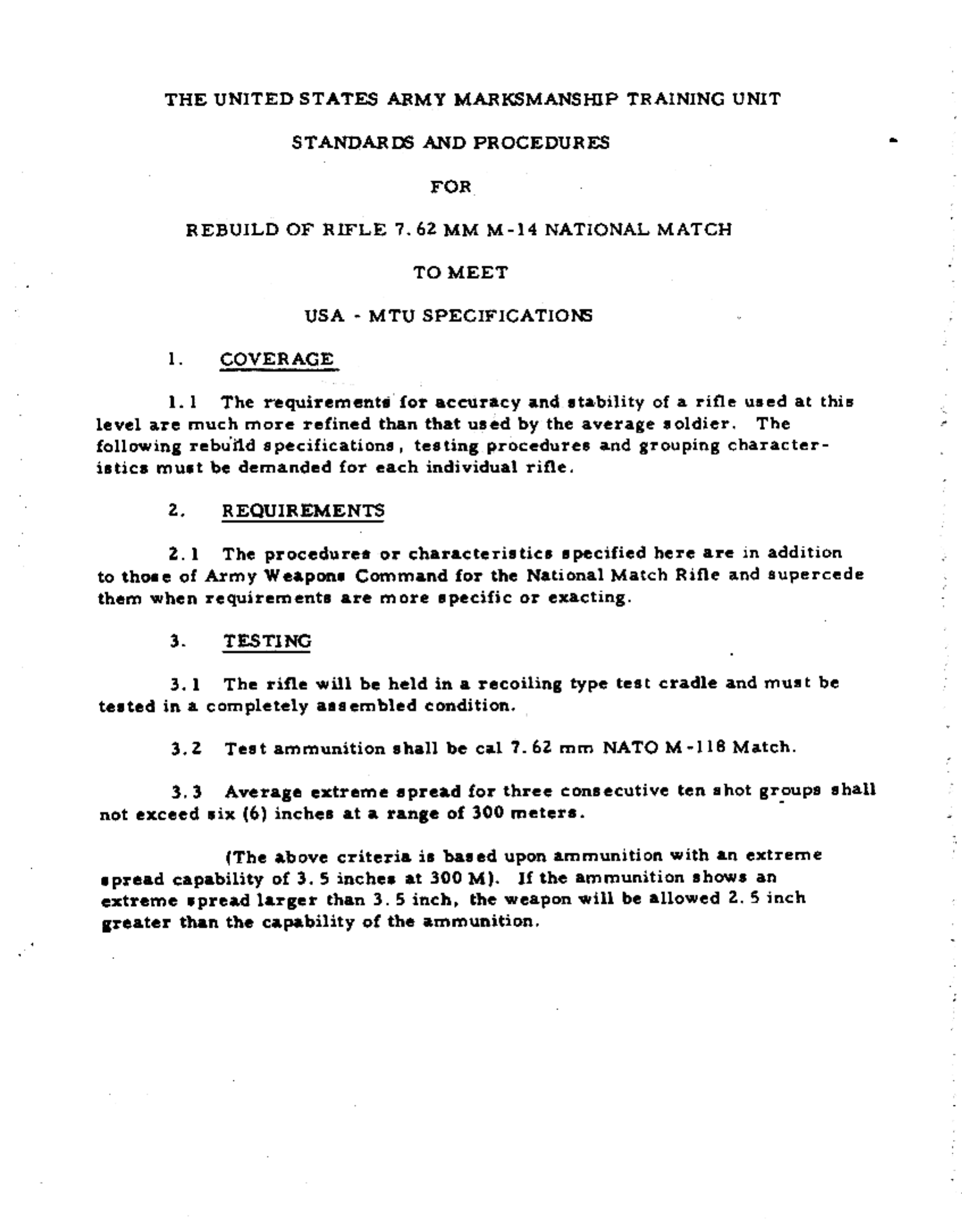 Standards & Procedures for Rebuild of Rifle 7.62MM