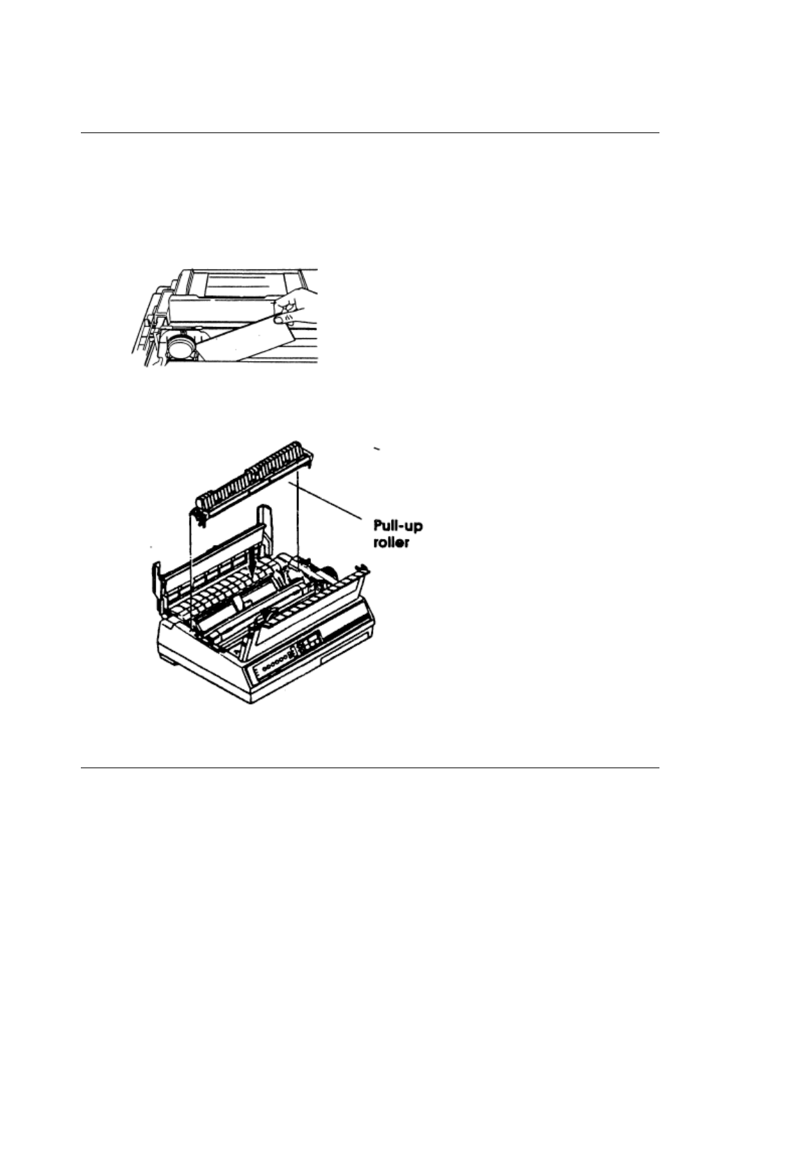 3. Open the rear cover. Set the pull-up roller on the printer so that the tabs on the roller are in the