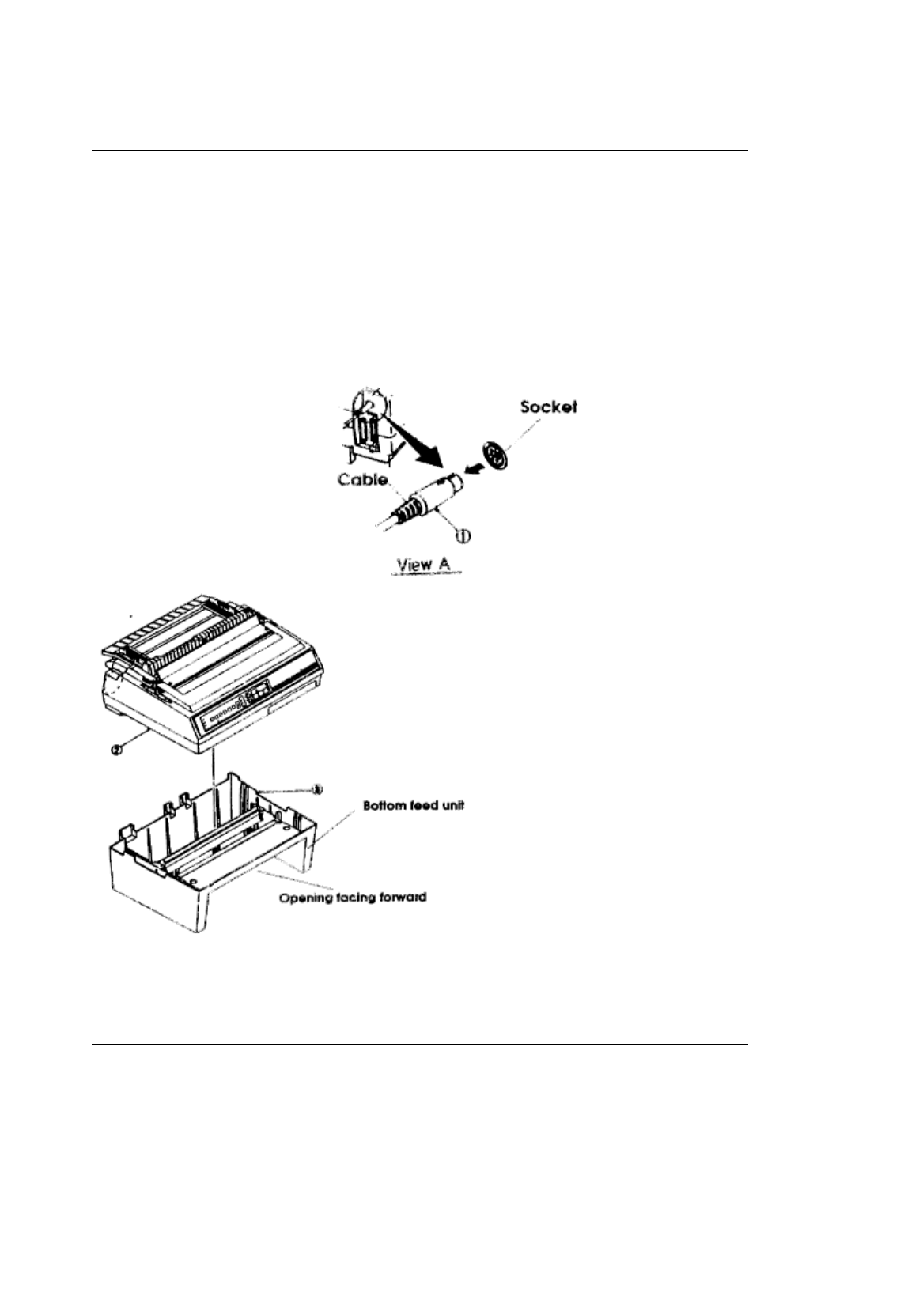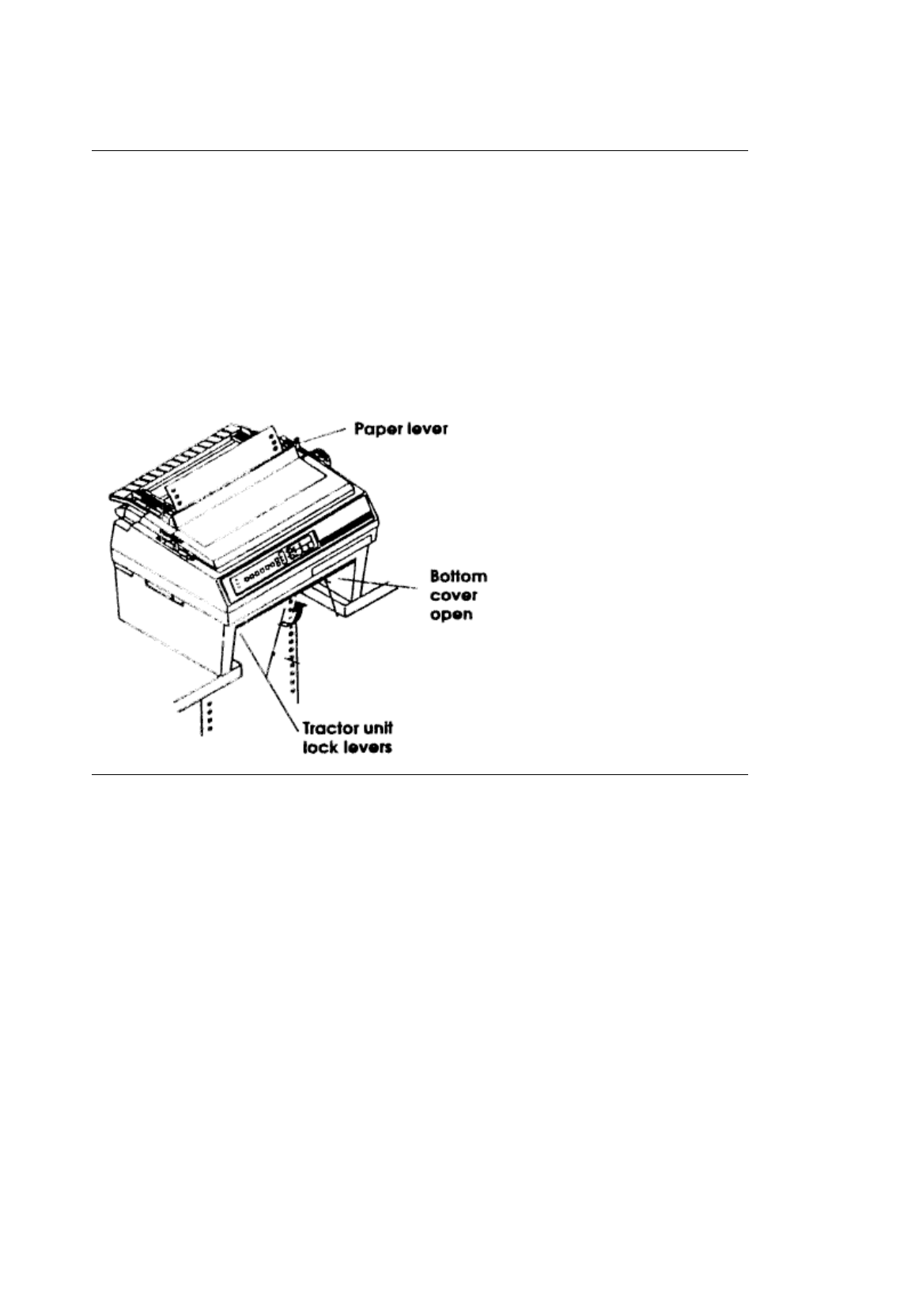 Do not attempt to pick up the printer and bottom feed unit together. Disconnect the printer from