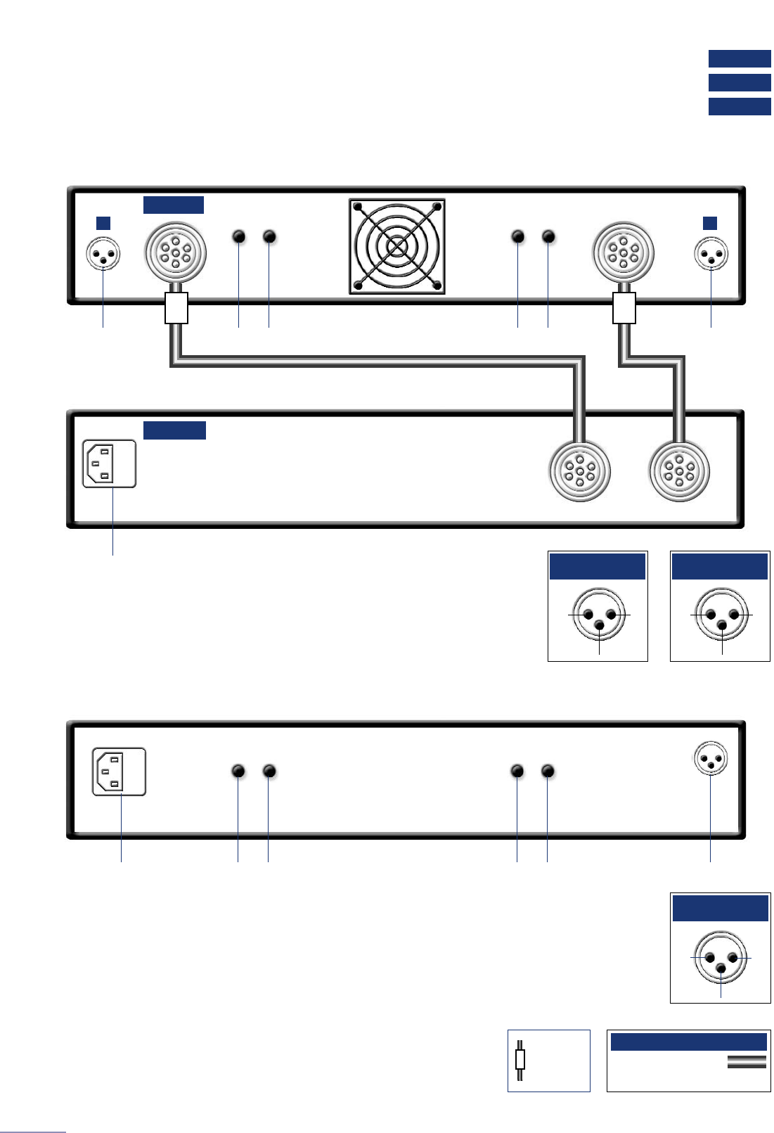 Left and right handed DIN to XLR cables are required.